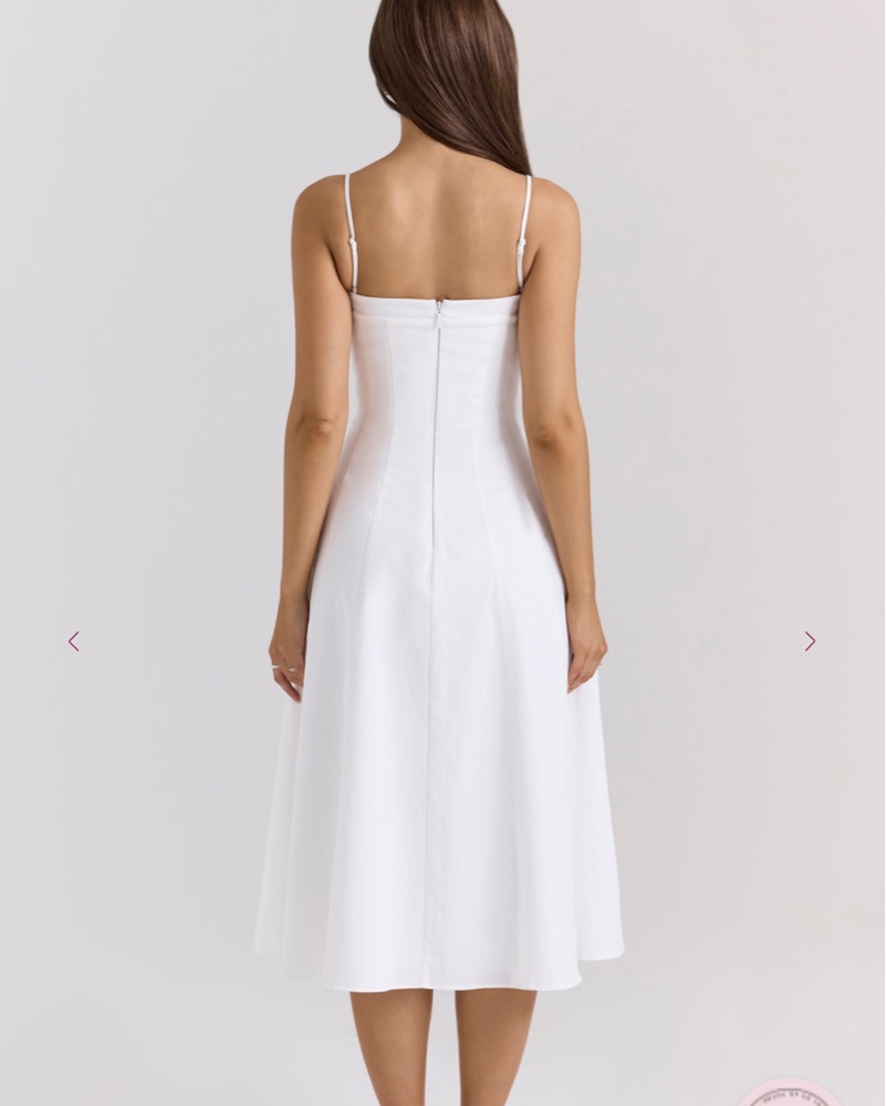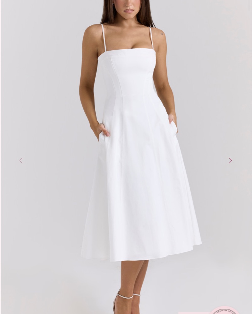 White Stretch Cotton A-Line Midi Sundress