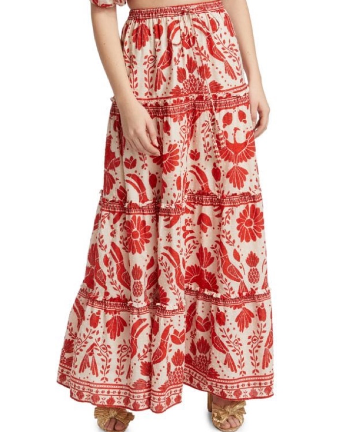 Farm Rio Red Patterned Skirt and Top Two Piece Set. Jungle Flow Tassel-Tie Cotton Maxi Skirt and Top. Worn twice. Size XS in both. Draw string waist.