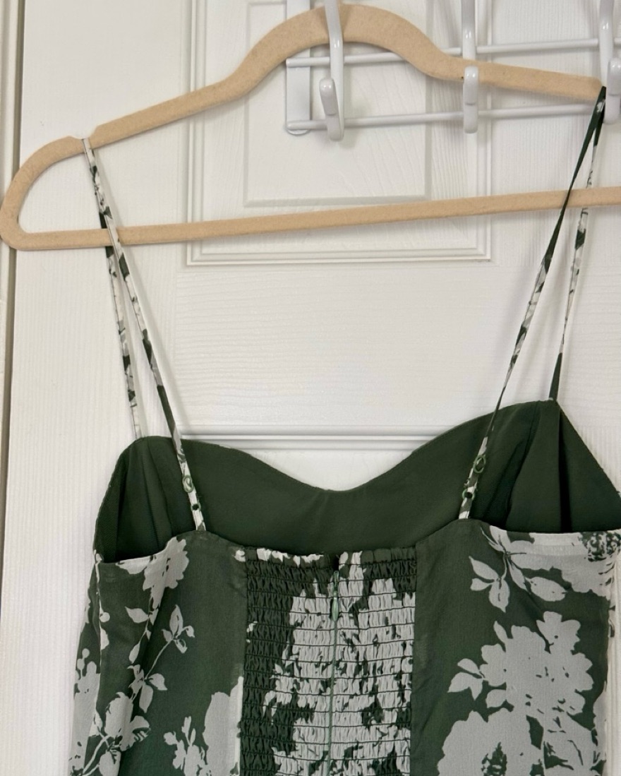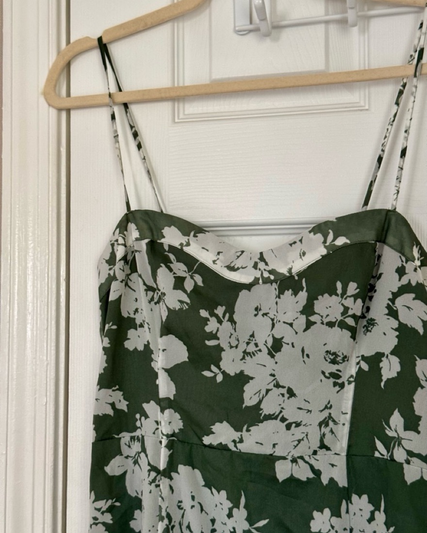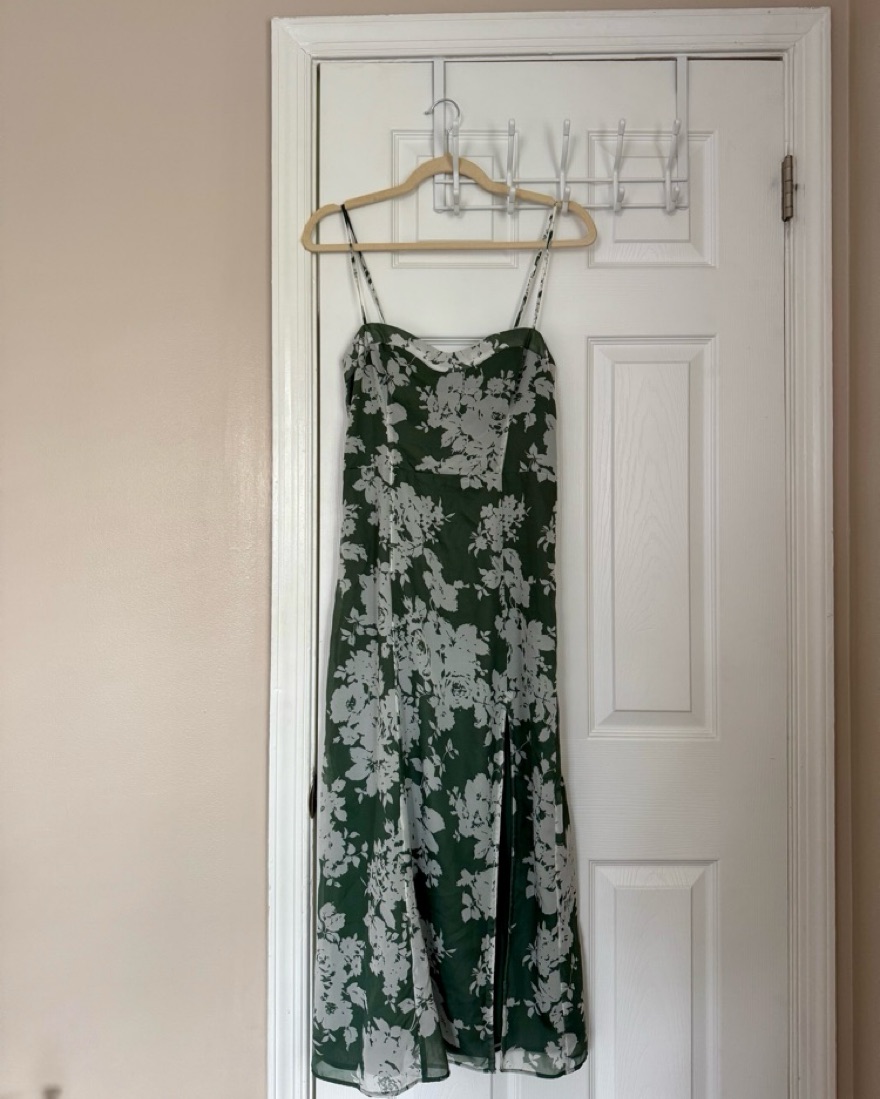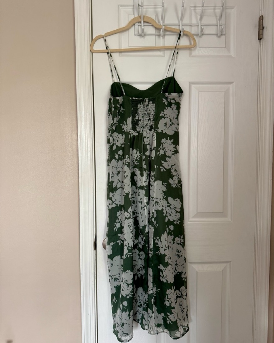 Green floral midi dress from Abercrombie with slit. Great for spring and summer and def good for a wedding! Has slit and straps are adjustable