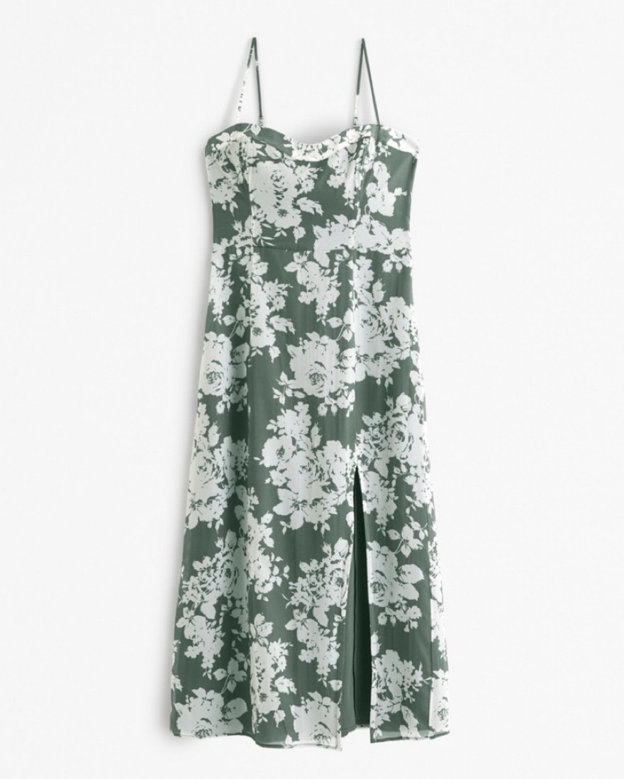 Green Floral Midi Dress Abercrombie