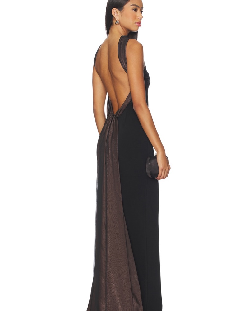 Elegant black strapless gown, open back. Used once in perfect conditions.