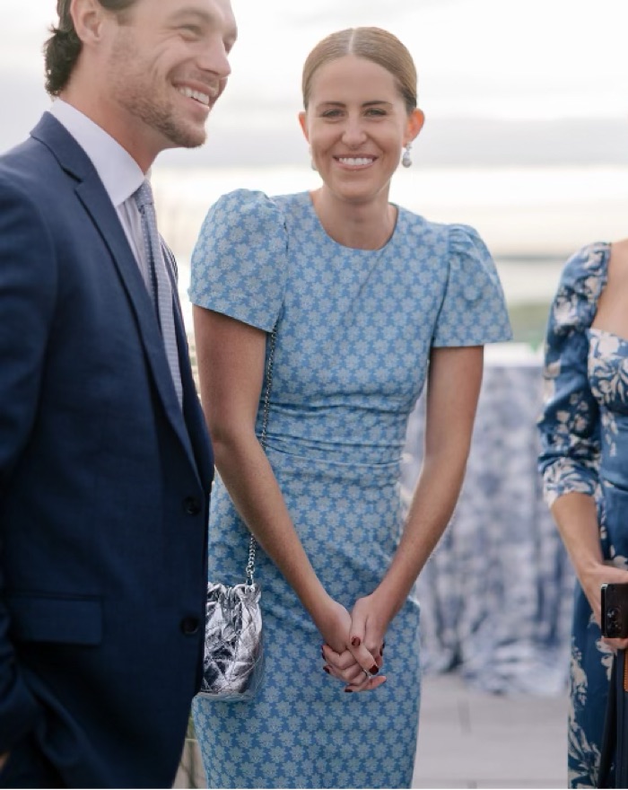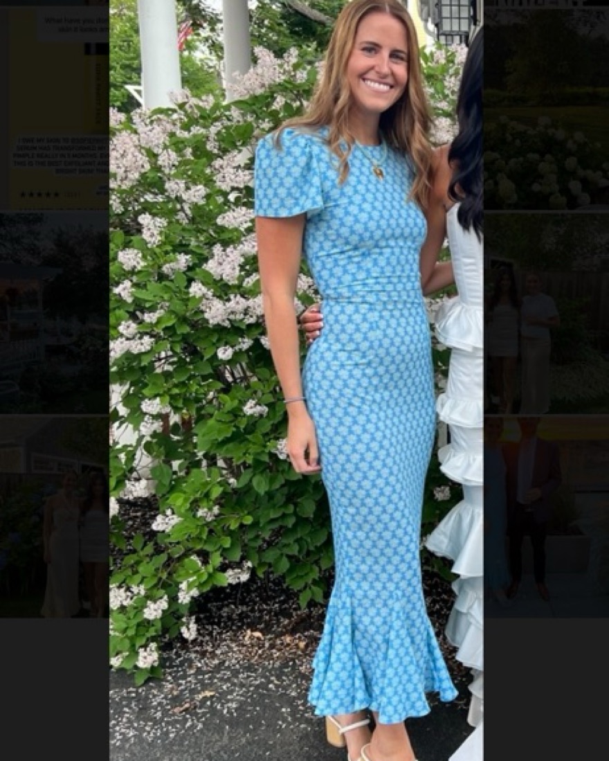 Fitted dress with peplum style skirt and cap sleeves in loves me not blue style
