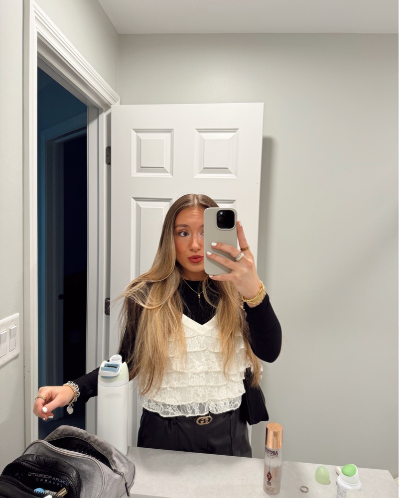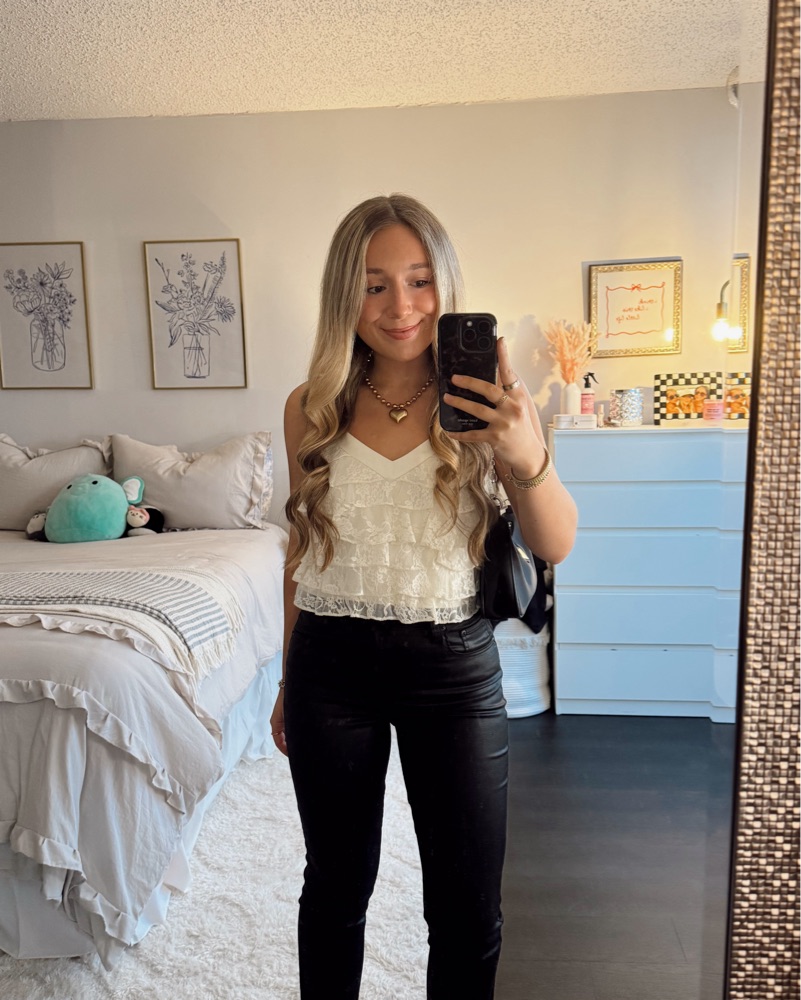 This top is stunning! I’m obsessed with it and it’s so fun to dress up with layers or as is. So cute! There’s a hidden zipper on the side and the straps are adjustable.