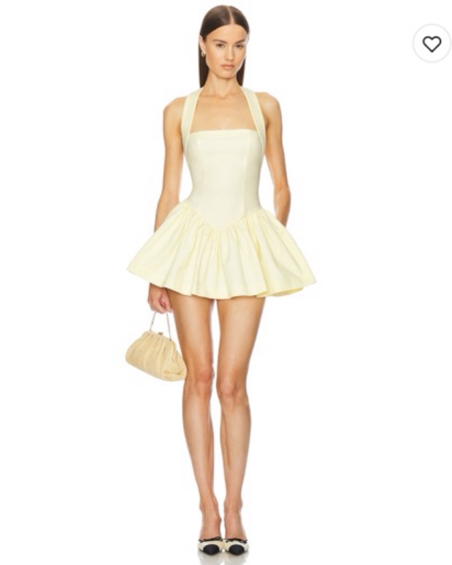 Faille Halter Mini Dress in Lemon Cream
