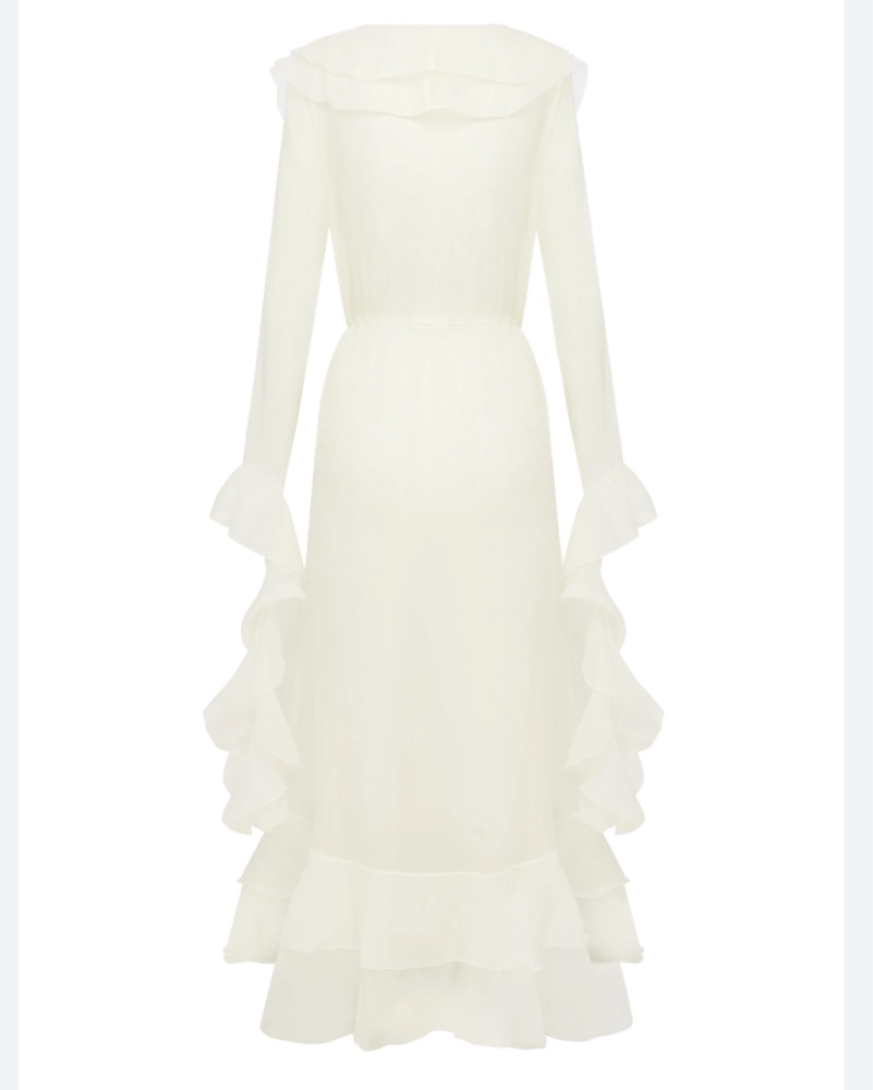White Silk Ruffle Sleeve Coverup Kimono