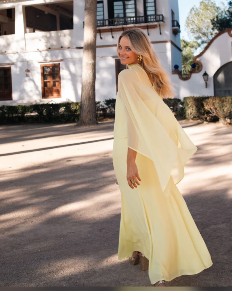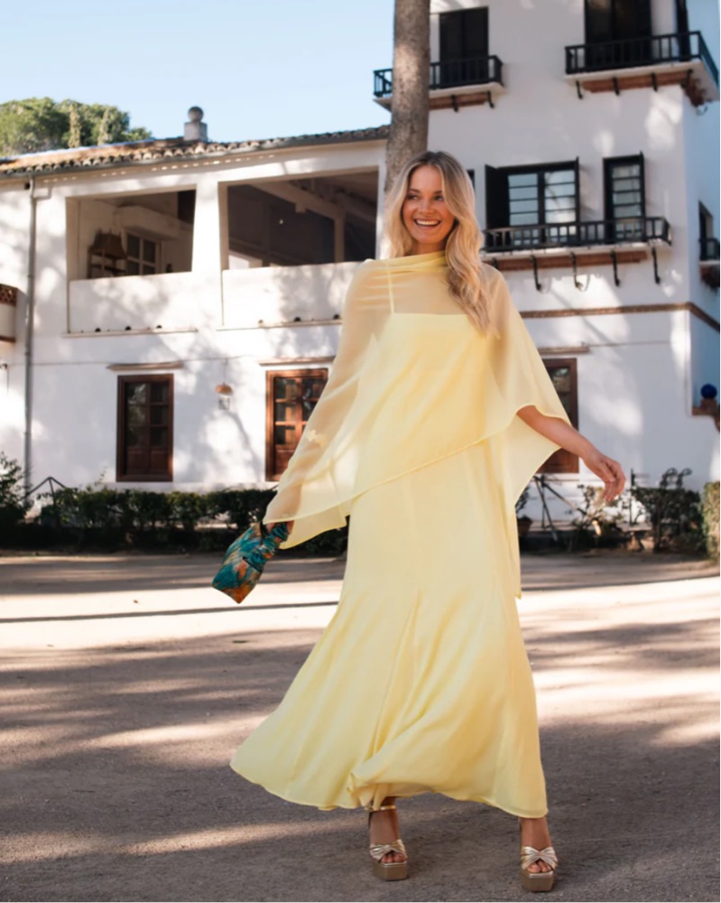 Spanish brand, perfect summer yellow dress with cape. Great for wedding guest dress or for any events!
