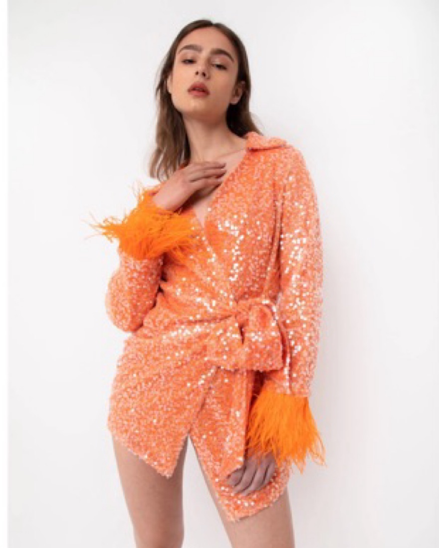 Fun Orange Sequin Swim Cover-Up/Dress by Wolf and Badger - Pickle