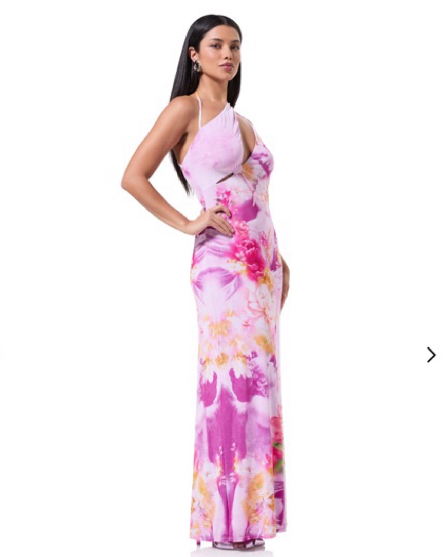 Brand new with tags. This stunning floral maxi dress is perfect for any special occasion. The halter neckline and flowing silhouette create a flattering and feminine look.