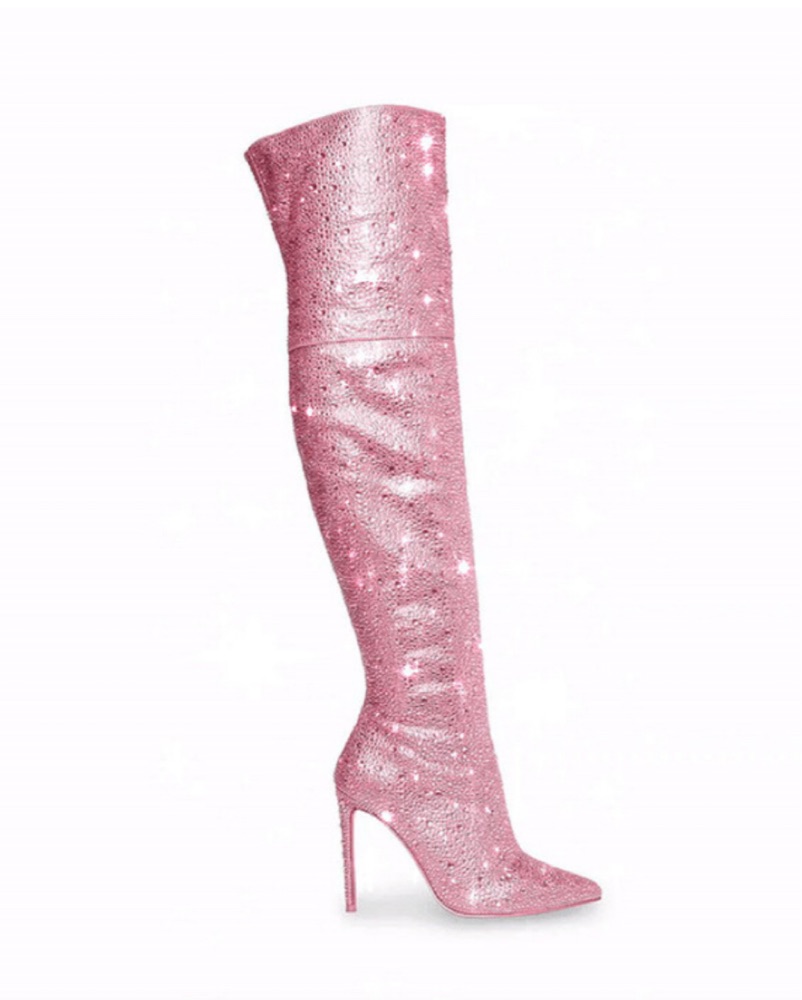 Rhinestone sparkly pink stiletto boots