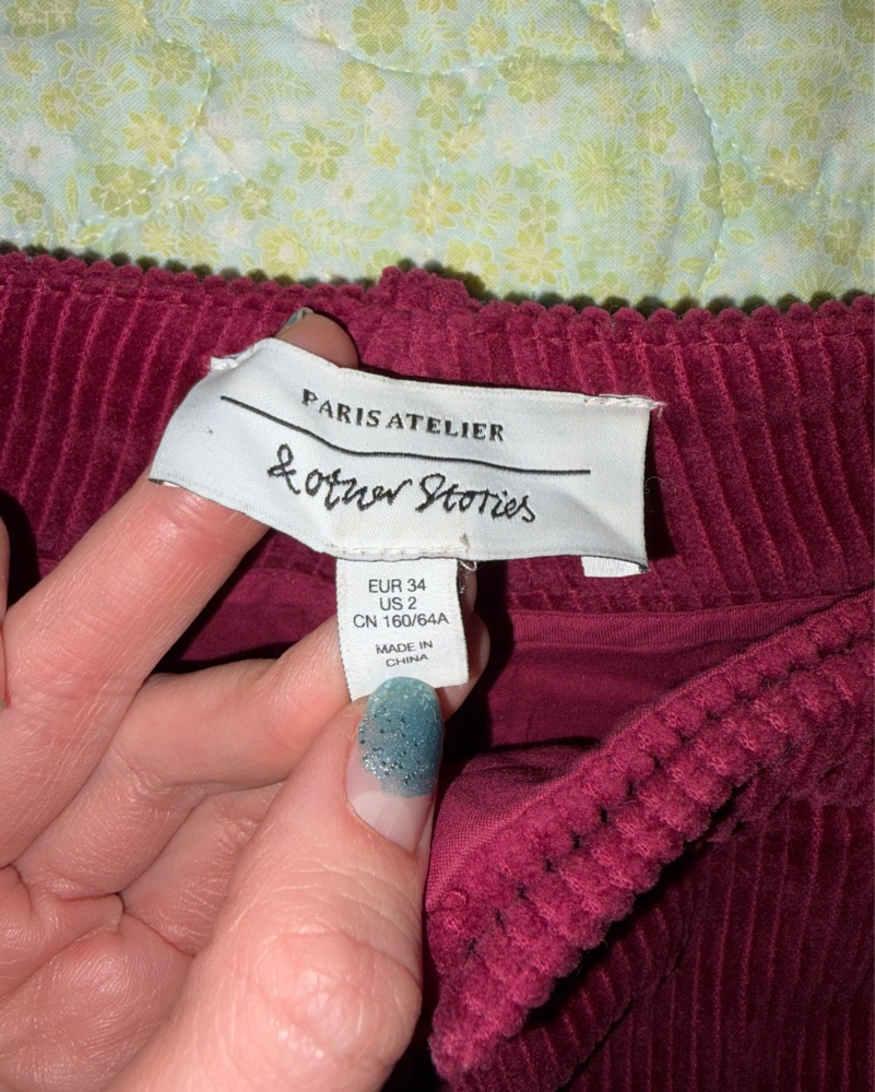Imagine yourself looking so iconic in this like cmonnnnn. I even wore this once out in bushwick lmao. I’ve worn it like 5 times. bought from And Other Stories. kick flare, corduroy, rly nice. just so fun. this is also for sale on depop @kpgurl. waist 14”, rise 10”, inseam 26” and i am 5’10