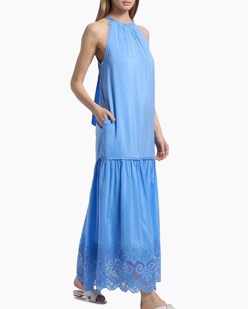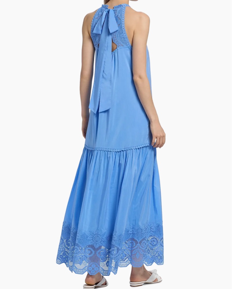 Teri Halter Lace-Trim Tiered Maxi Dress