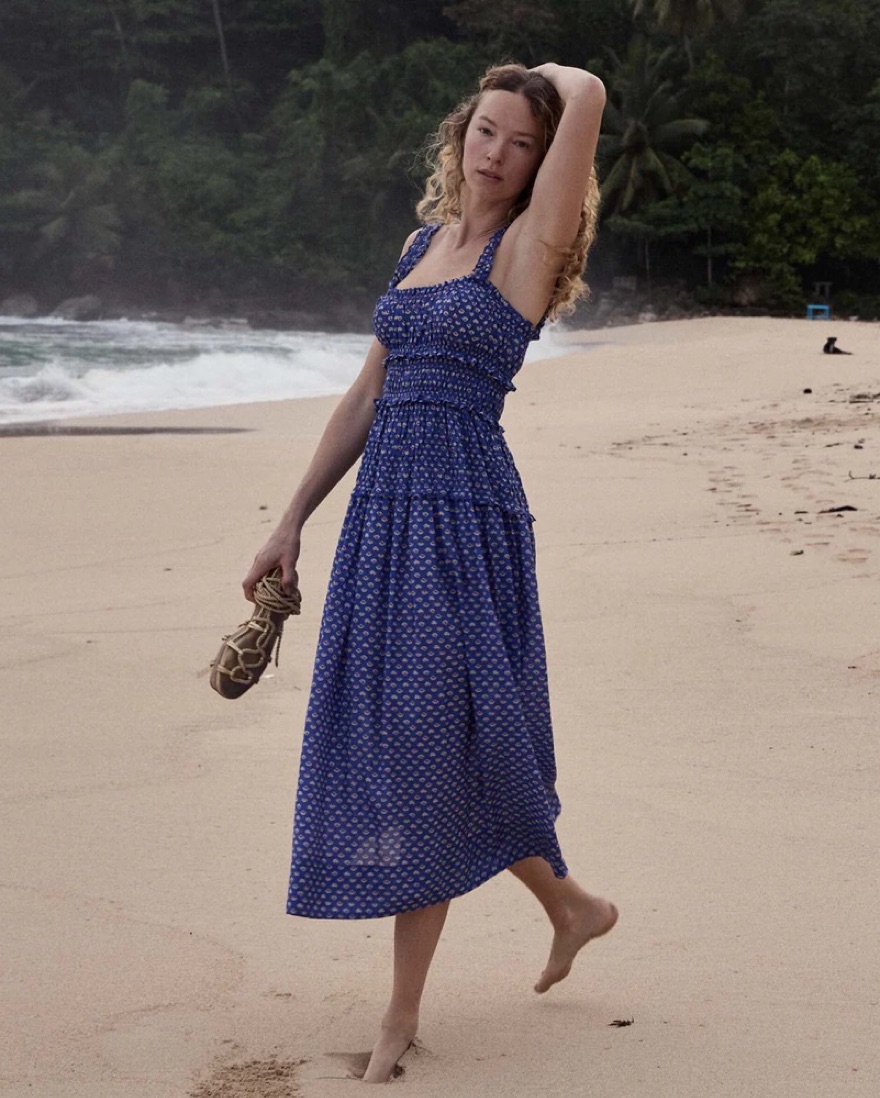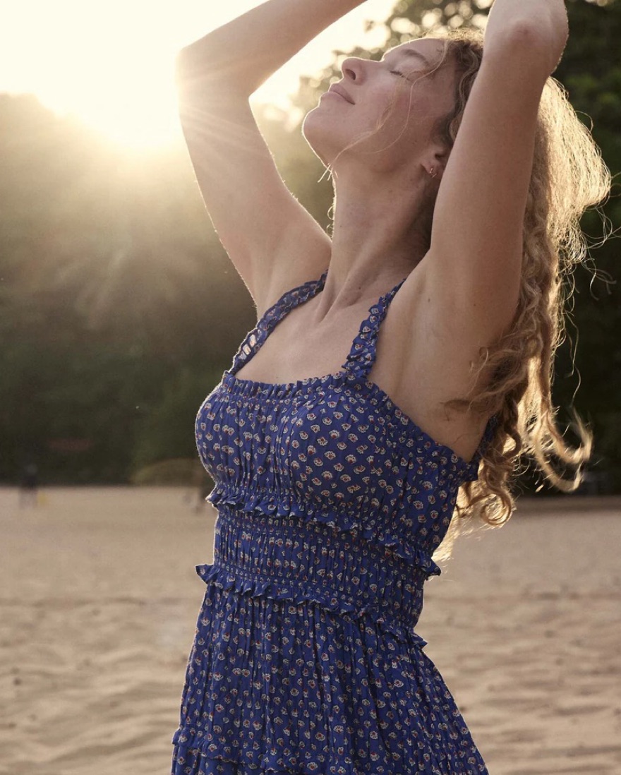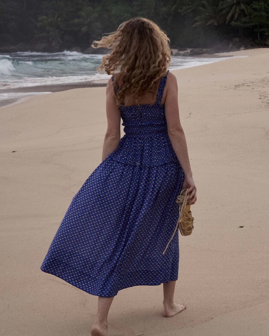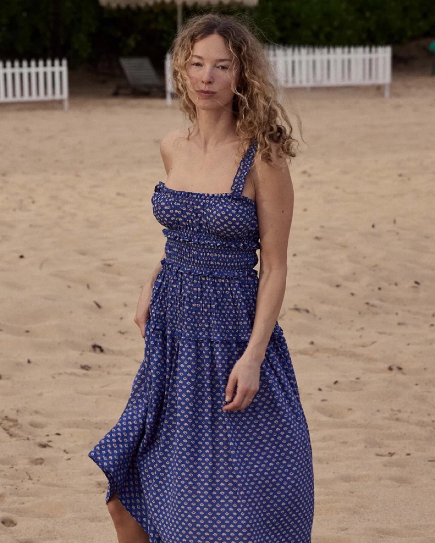 Crafted from a lightweight blend of organic cotton and viscose, the beloved Marianne Dress features a square neckline, slender straps, a gathered bust, and a fitted bodice framed with petite picot-edged ruffles. Size XS.