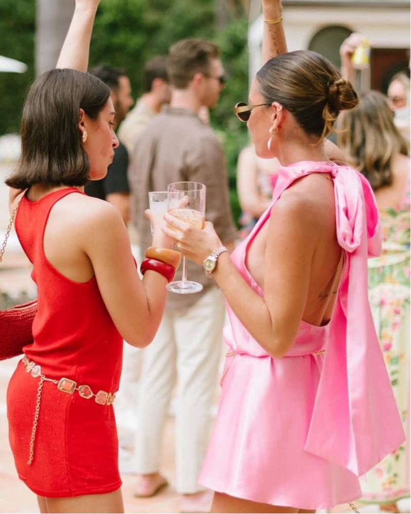 Pink mini halter dress with big bow detail & low back. So fun for parties/special occasions!