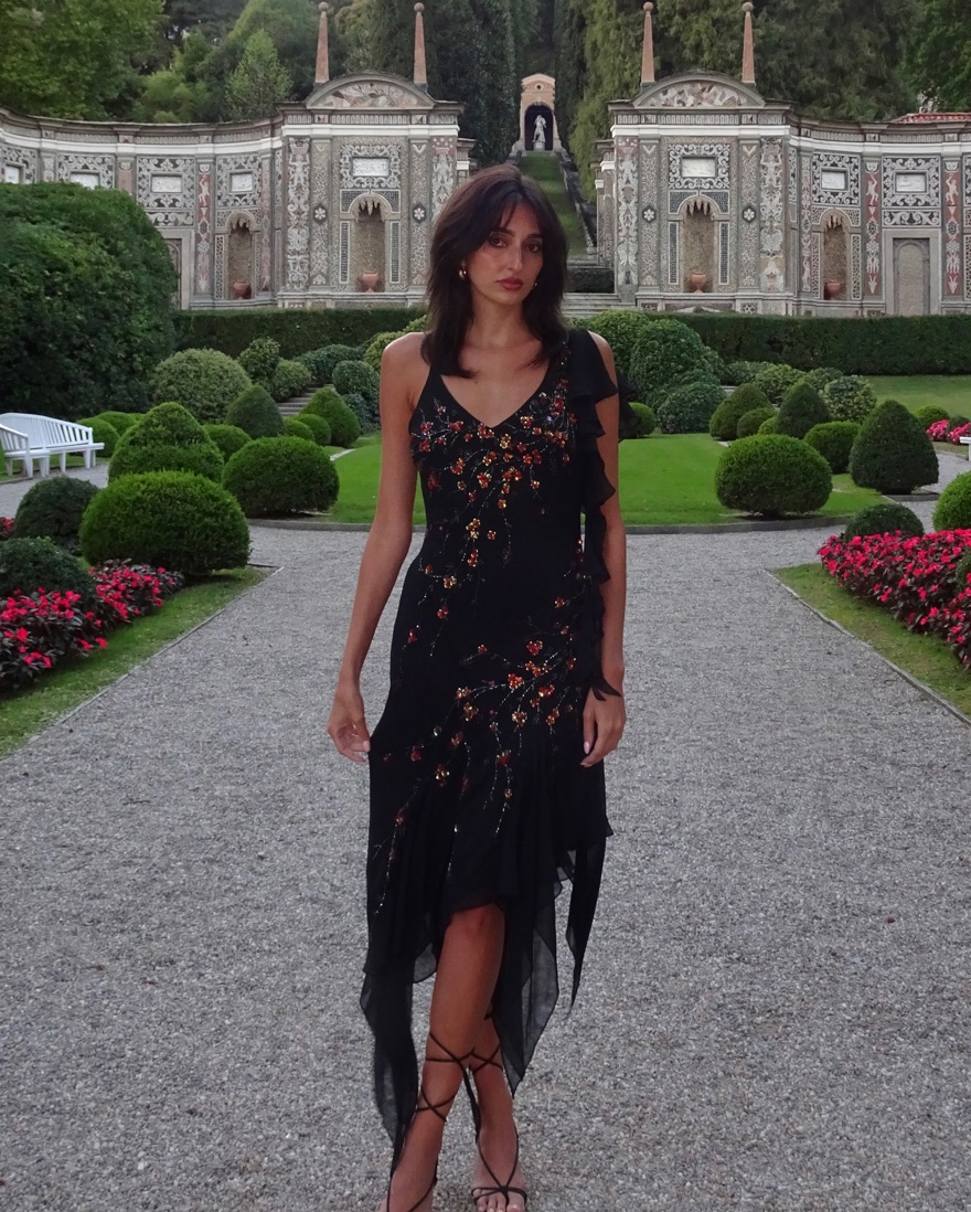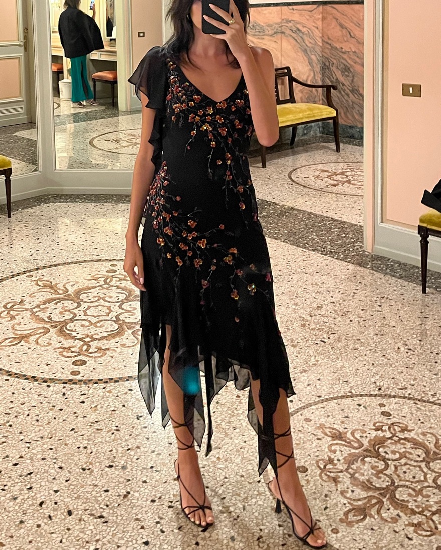 The most gorgeous vintage Sue Wong silk sequin/beaded floral ruffle midi dress. Very delicate so please be careful <3