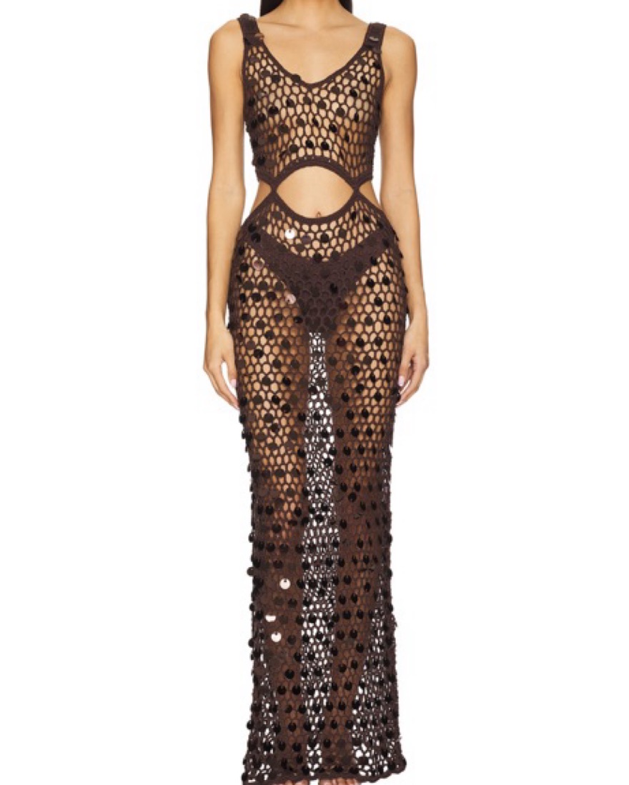 Super down brown cover up dress with sequin
