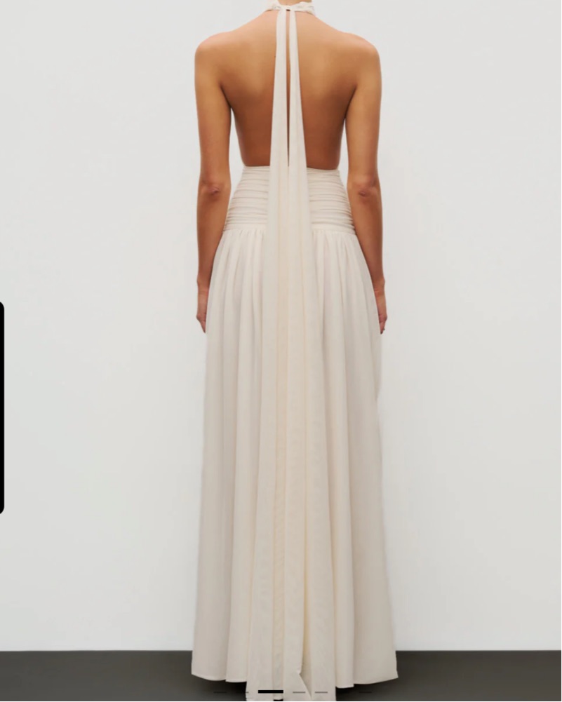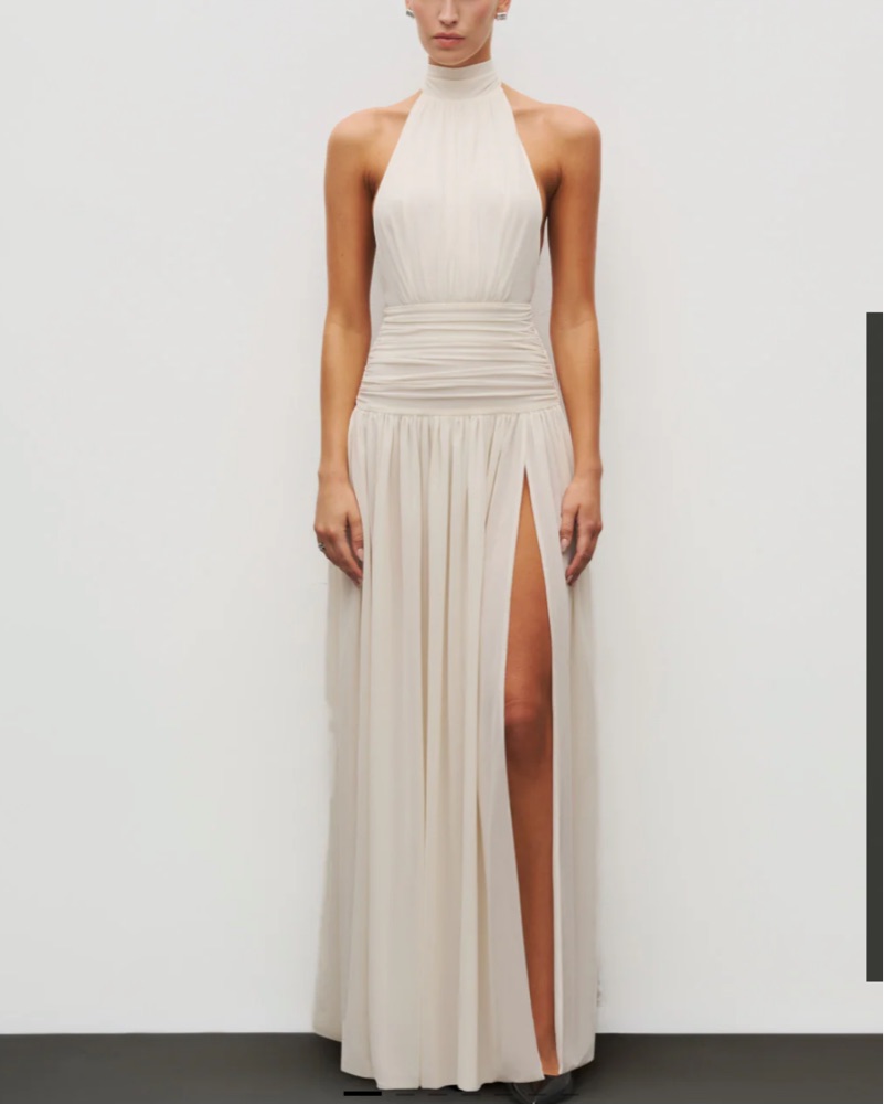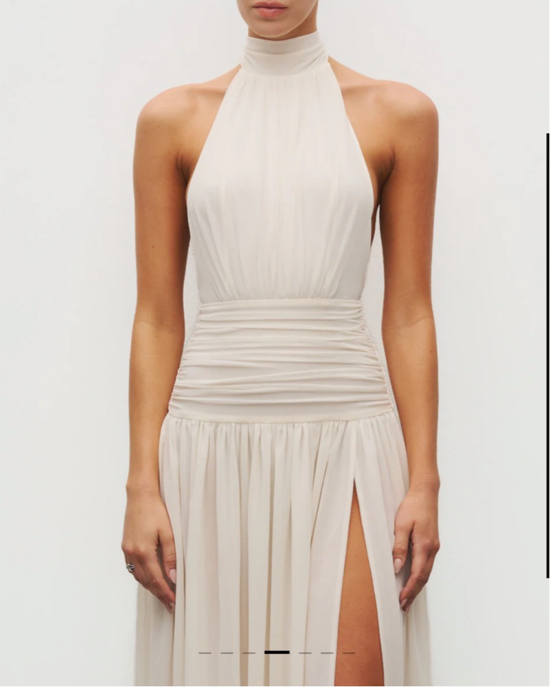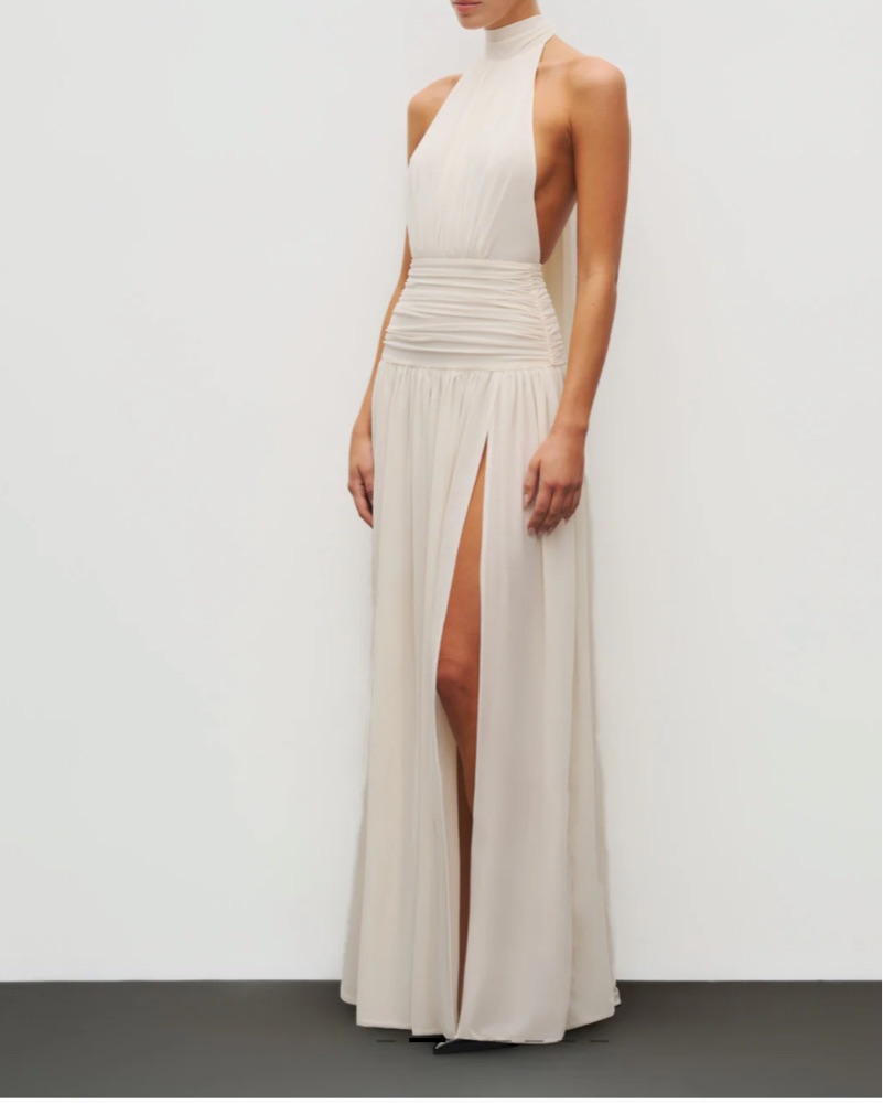 Cut from Heiress’ signature double-layered power mesh, this gown sculpts and elongates with fluid precision. The halter neckline and open back create a refined balance of structure and sensuality, while the high slit adds movement and ease. Fully lined for support and form, it’s a modern statement i