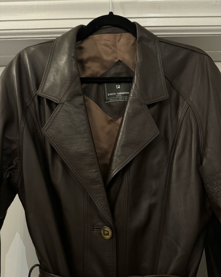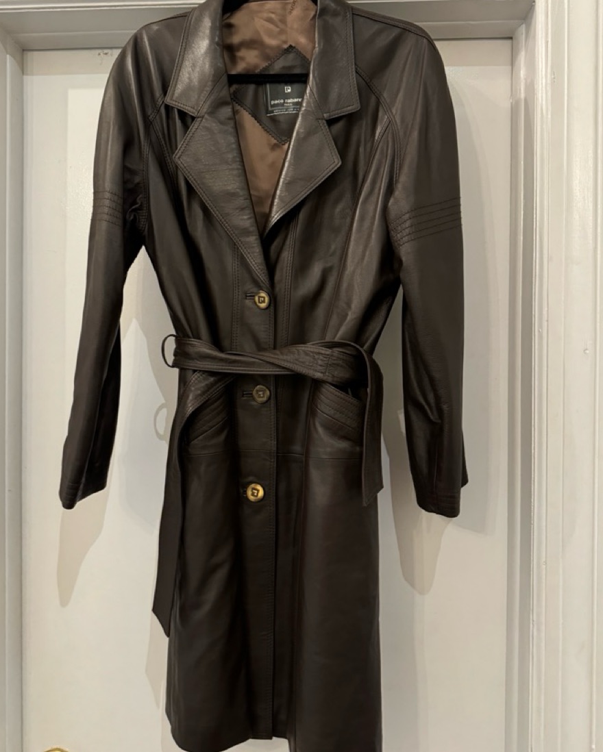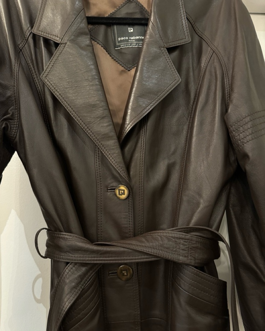 Vintage Paco Rabanne brown leather trench coat. Excellent condition. 100% real leather.