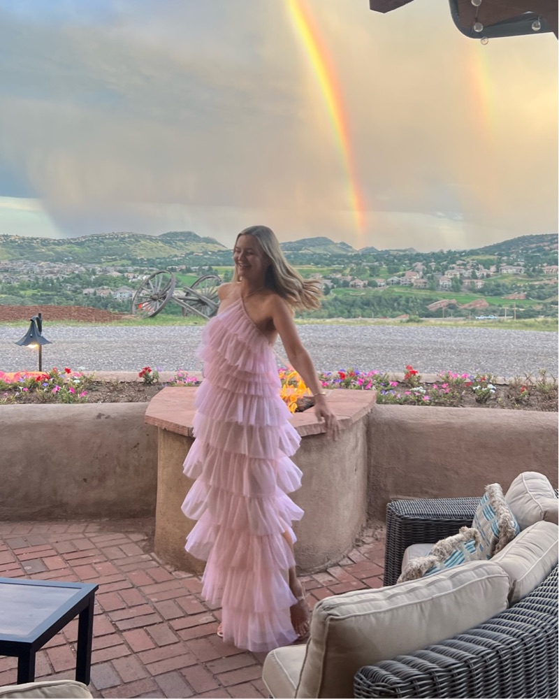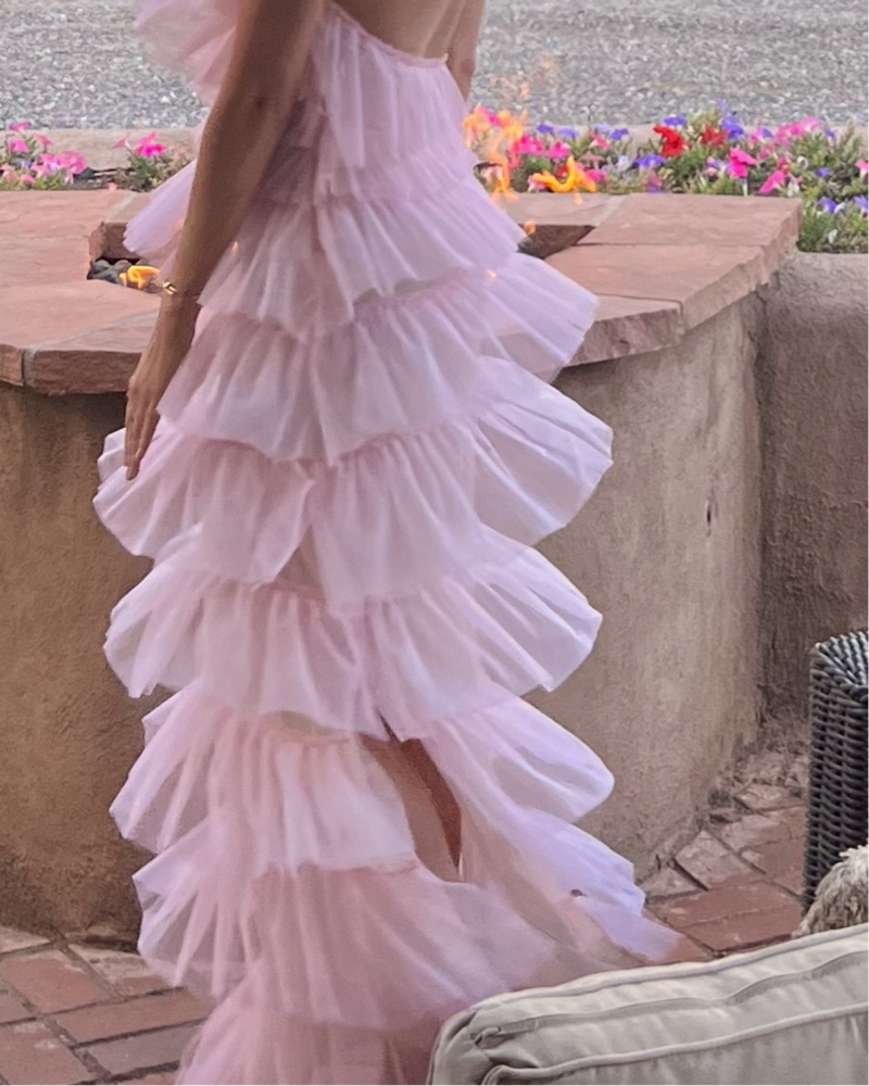 This stunning maxi dress is perfect for special occasions. The tiered ruffles and flowing silhouette create a romantic, feminine look.