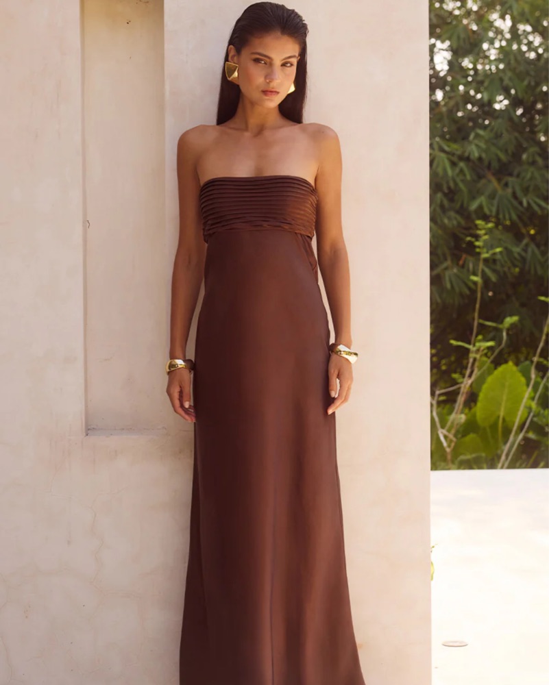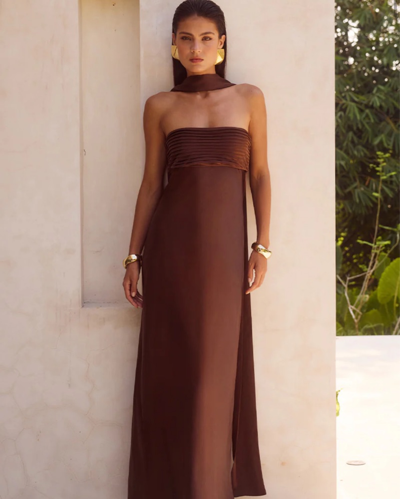 With feminine pleat detailing and a scarf that drapes over the shoulder, our Elsa Maxi Dress the perfect modern look.