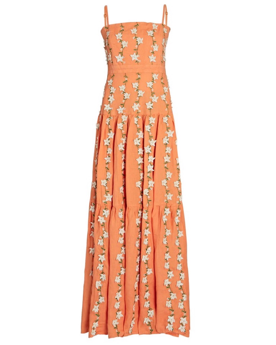 Agua by Agua Bendita Lima Floral Appliqued Linen Maxi Dress