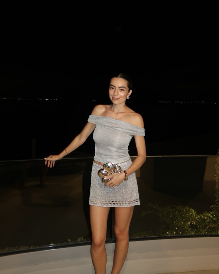 Renting my glassons silver knit set comes with a mini skirt and matching top in an XS skirt is a size small worn once for New Year’s Eve cutest NYE outfit or going out