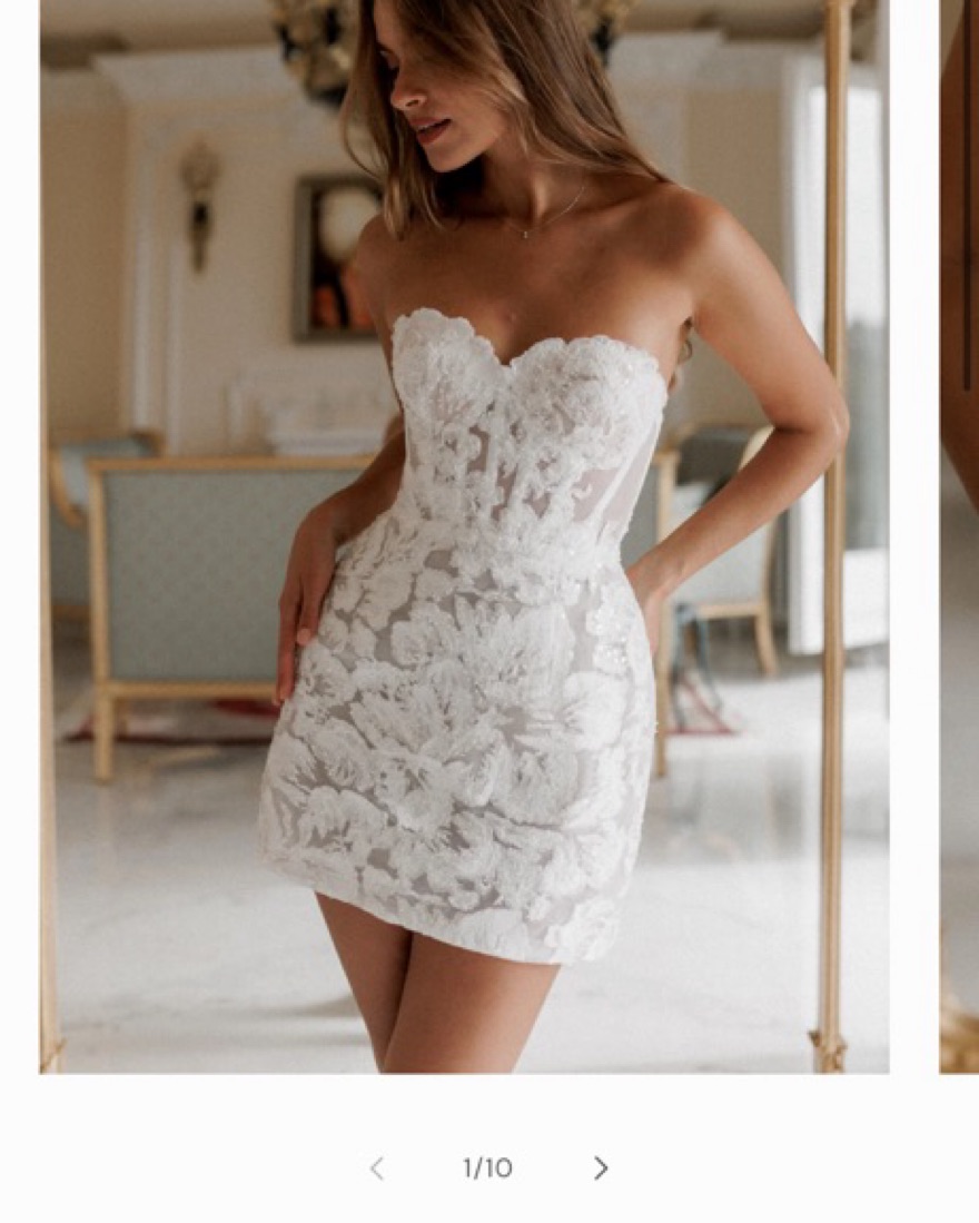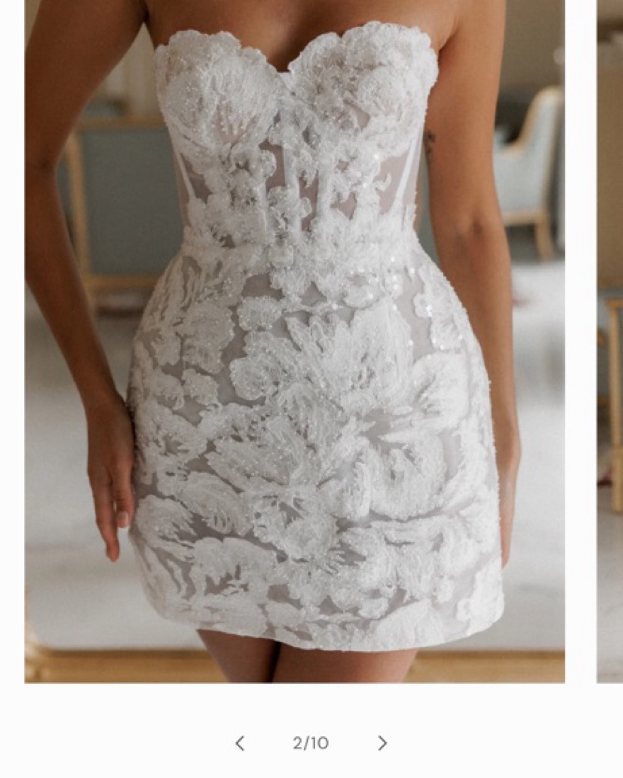 Wore this at my wedding after party it is truly a special dress. *please no spray tans* it is a size 6 but I usually am a 4