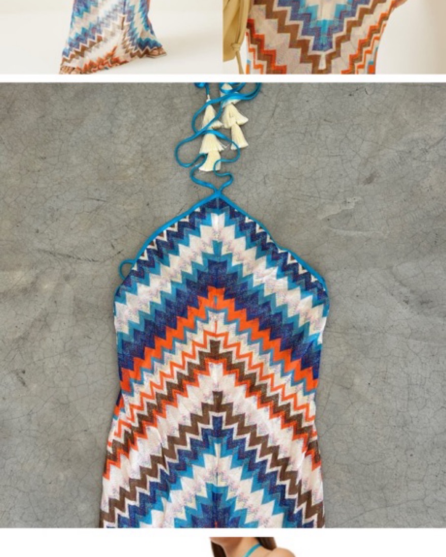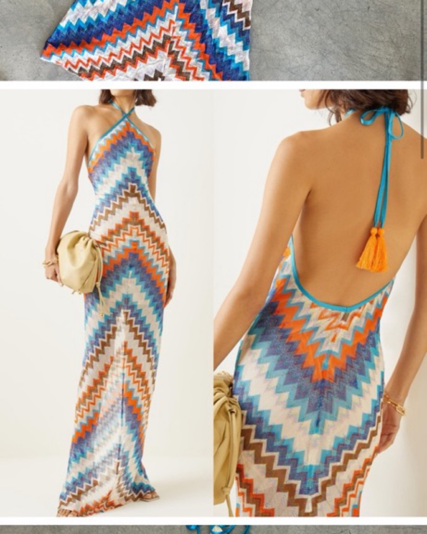 Orange blue and white chevron knit halter dress from alexis (very similar to missoni vibes), size small