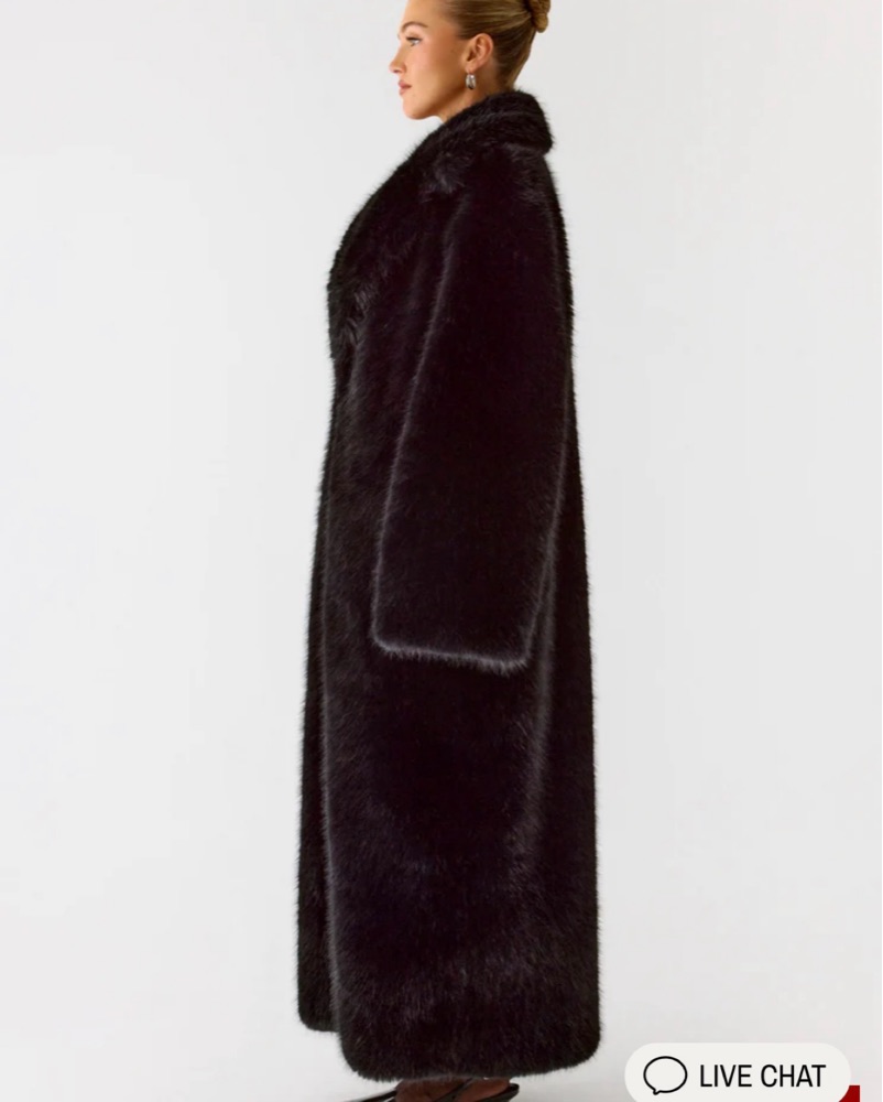 Its oversized, maxi-length silhouette offers cozy coverage while maintaining a chic, polished look. Fully lined for warmth and crafted in soft faux fur. Price covers dry cleaning.