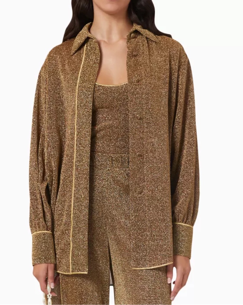 This shimmering bronze top is perfect for adding a touch of glamour to any outfit
