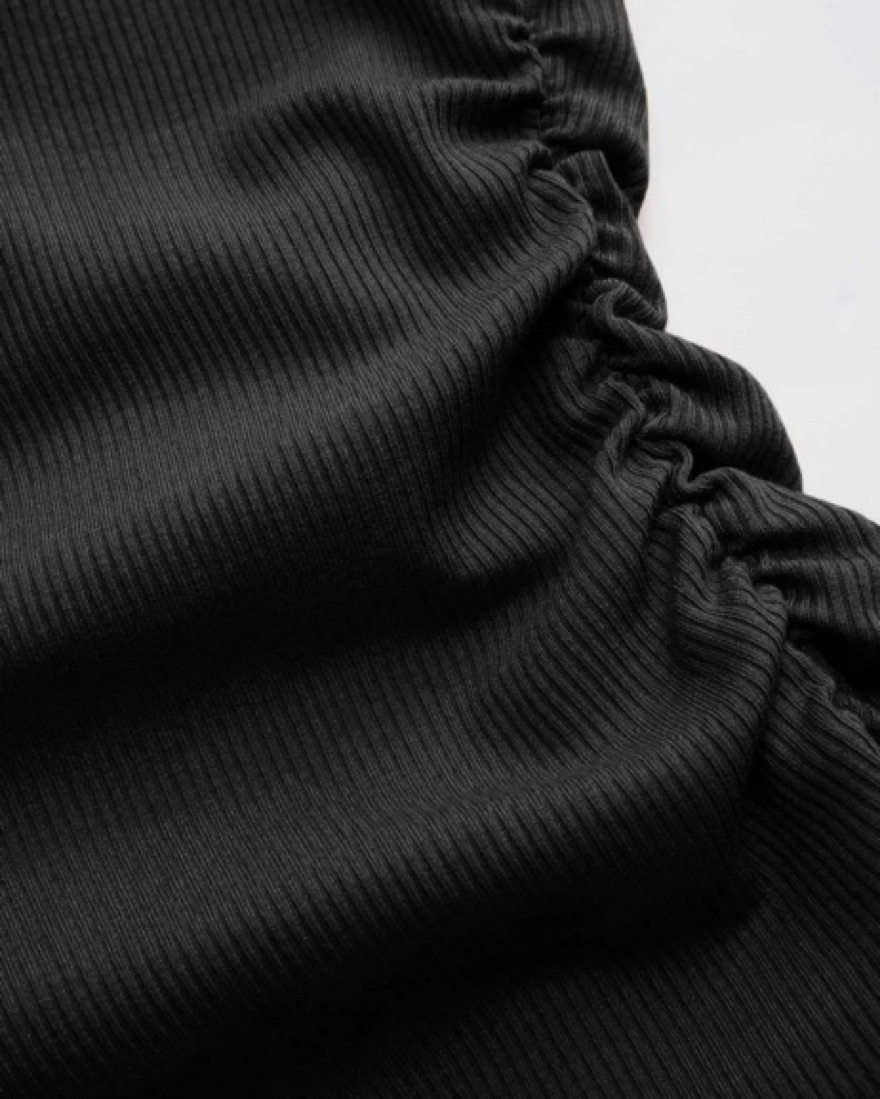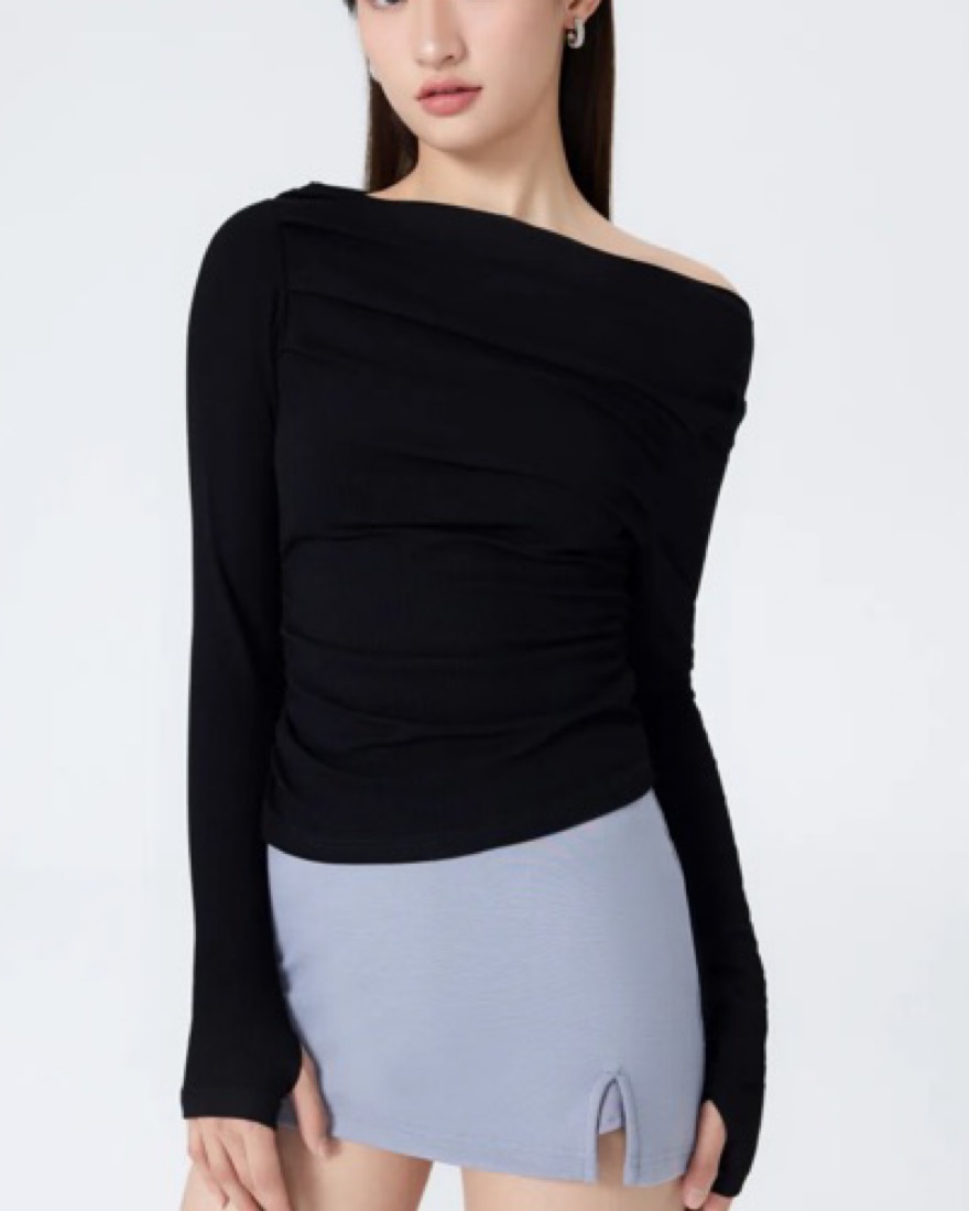 Very stretchy. Has thumb holes. Purchased at a thrift store. Size is 0. Near perfect condition, no flaws, no pilling, no stains, fabric is not stretched out.