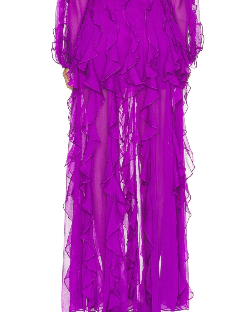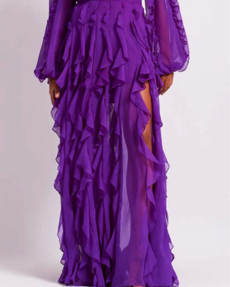 Patbo chiffon purple ruffles maxi skirt in size XS. Fits 0-2. Excellent condition. Matches with my stunning Patbo crystal beaded bodysuit 💜