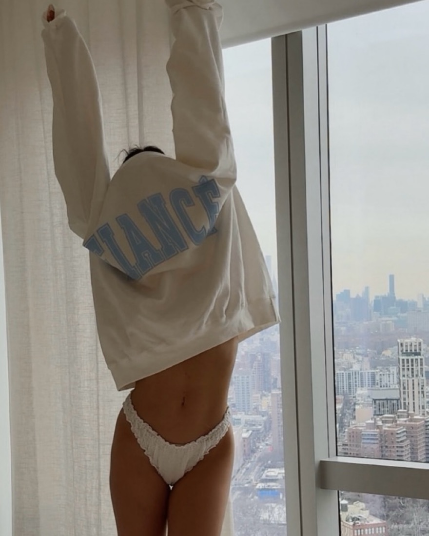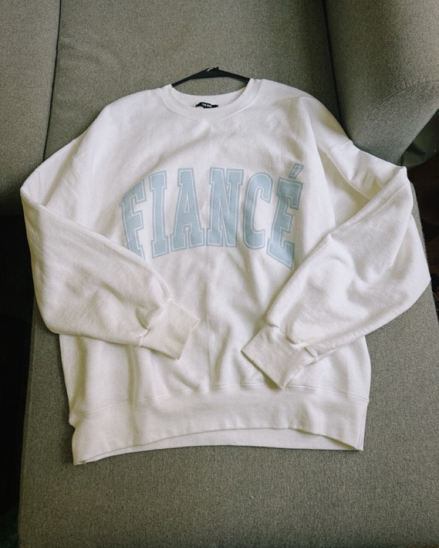 Sold out everywhere! Perfect for wedding weekend, bachelorette, engagements, etc. please return cleaned as this is white! Oversized cozy look - I wear a size small and this fits perfectly oversized on me. Sold out so please keep away from wine drinks etc that could get it dirty!