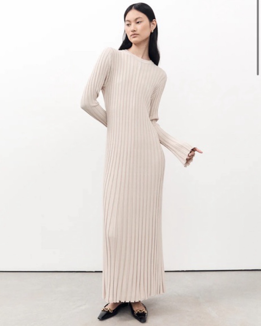Long sleeve midi knit dress stone color - perfect for date nights or every wear.