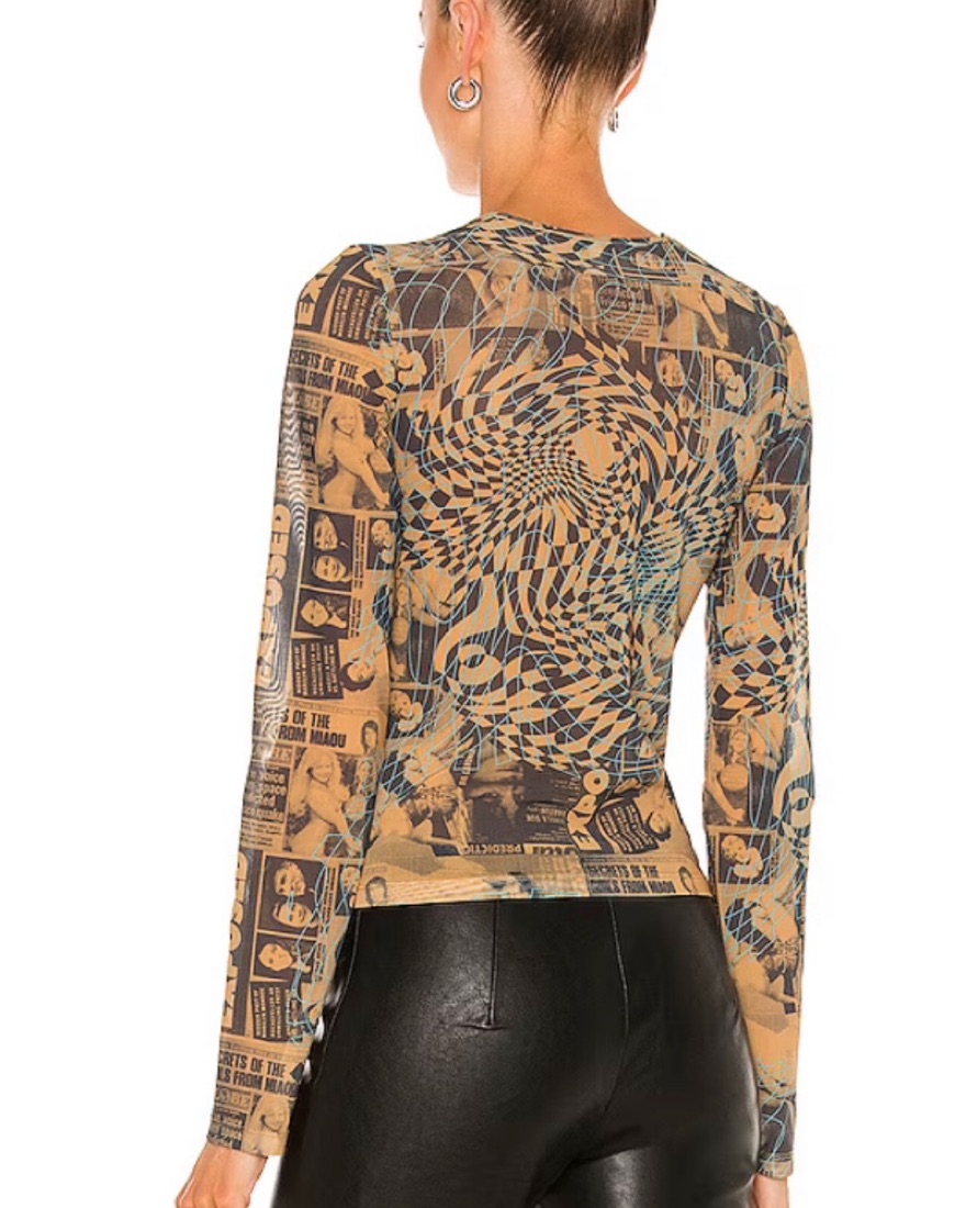 Barely worn! Really cool print on sheer top - stretchy so small fits me well even though I’m usually a medium