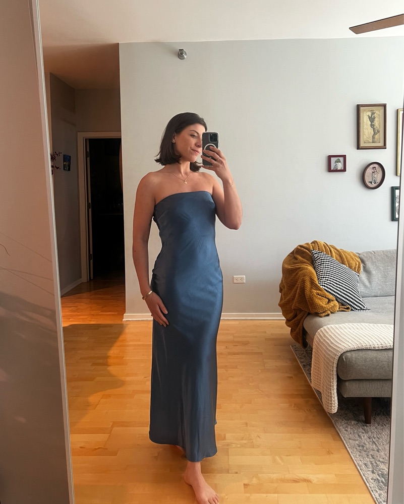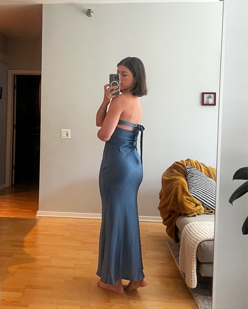 Elegant and sophisticated navy blue satin maxi dress perfect for a formal event or special occasion. Brand new with tags