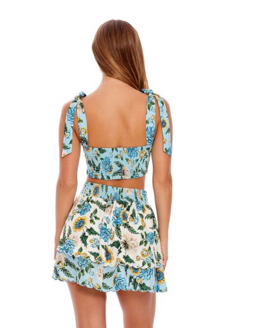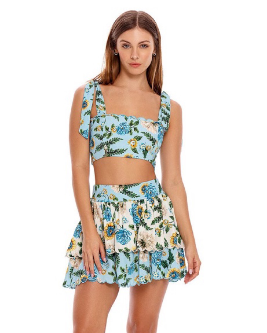 Agua Bendita, Blue Set, Beach Set, Mini Skirt, Floral, matching set, vacation