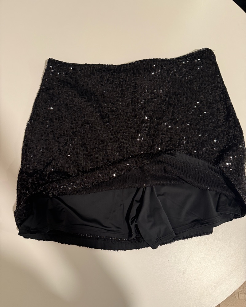 Black skirt with small sequins. Also has built in shorts.
