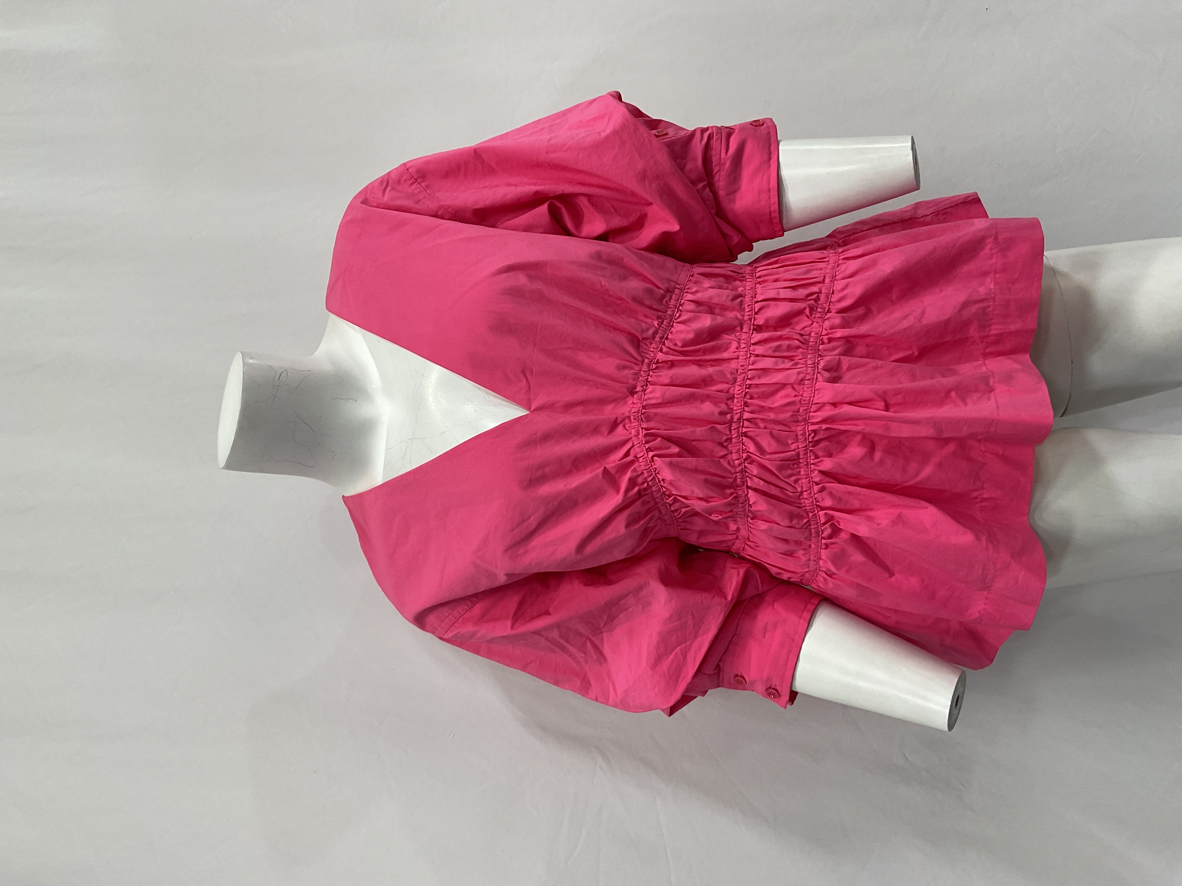 Romantic puff sleeves meet crisp cotton poplin in a pretty azalea hue. Perfect for brunch dates or garden parties with its feminine, flattering silhouette.
