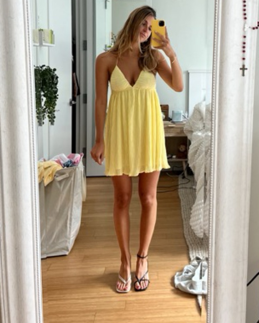 Darcy Halter Dress from Revolve More To Come in butter yellow