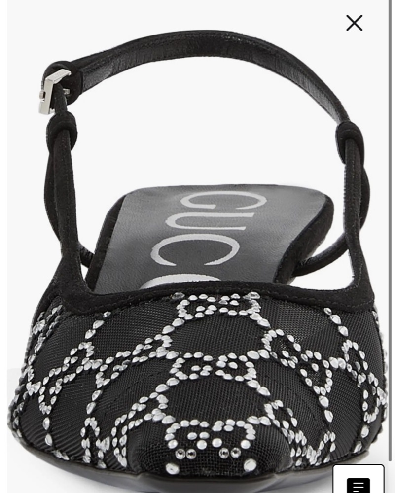 Gucci’s heritage monogram goes glam in sparkling crystals on this sheer mesh slingback refined with suede trim and a stacked kitten heel. This pump is part of the Aria collection, which references archival pieces from the '90s and early '00s in celebration of the house's 100th anniversary. 35mm heel