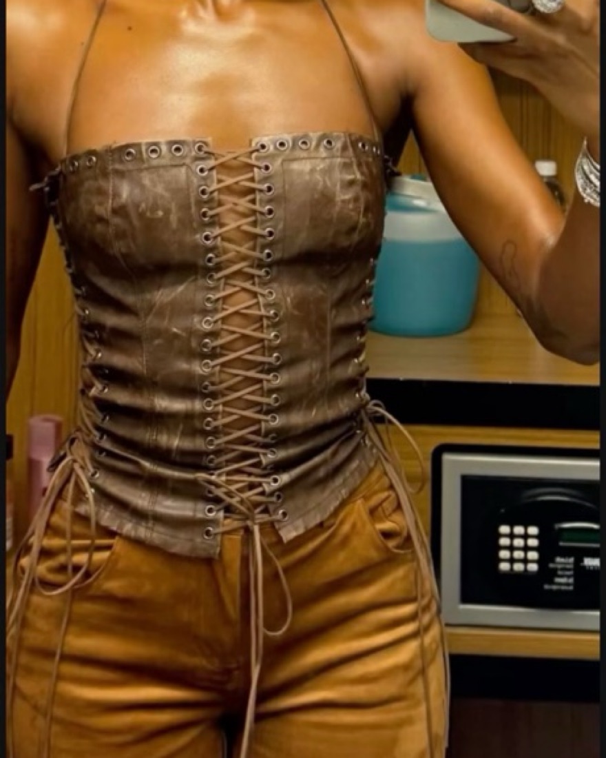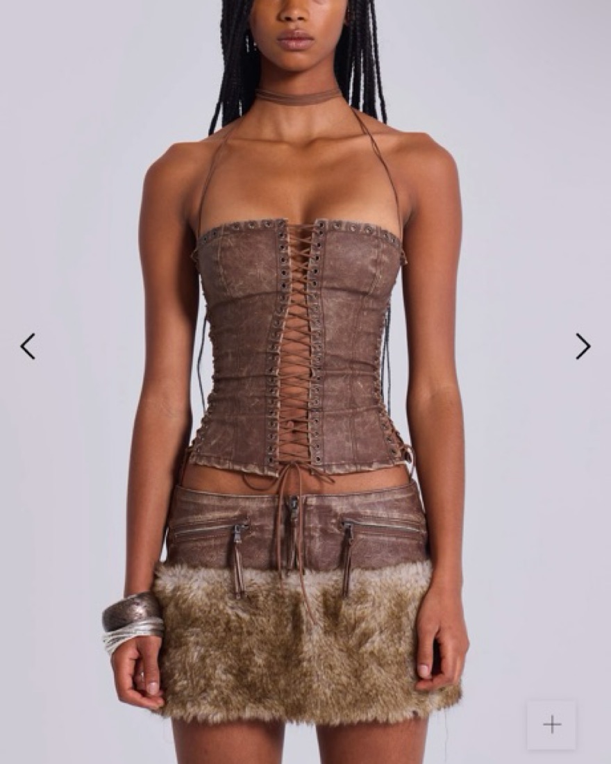 Odile Brown Faux Leather Lace Up Corset by Jaded London - Pickle