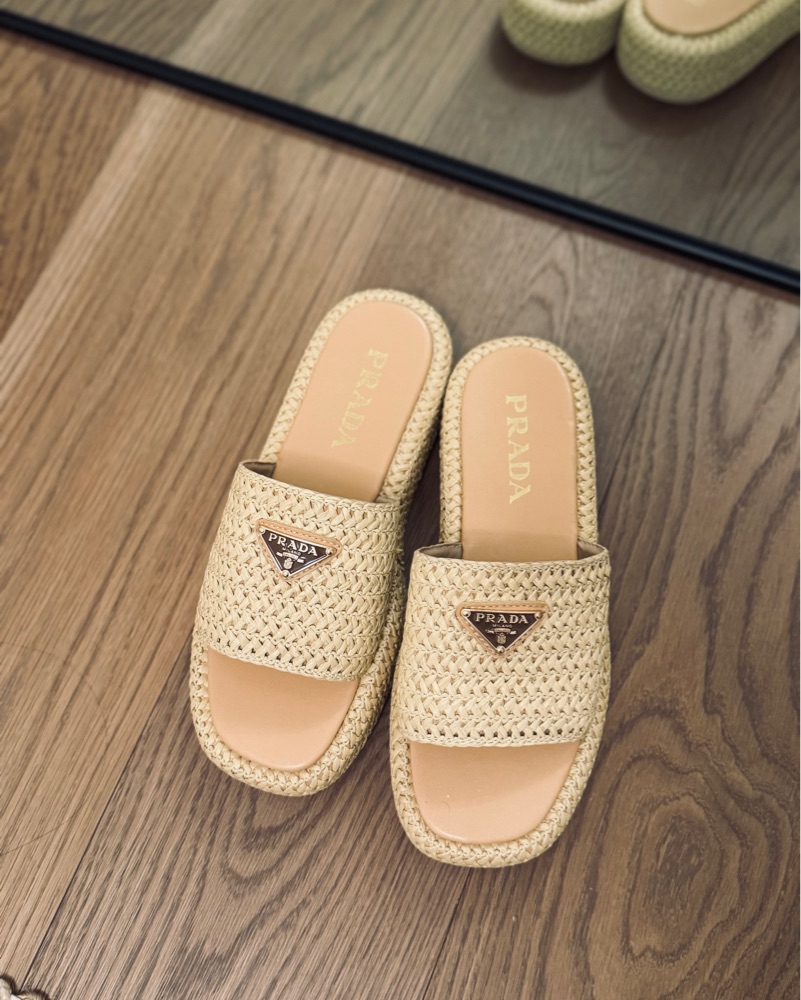 Prada Raffia Single-Band Platform Slides. I got these on poshmark so tbd if they are authentic. Either way they were perfect for my wedding weekend in Mexico! Size 38 (7.5).