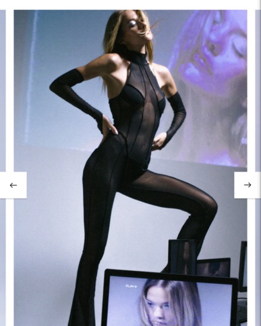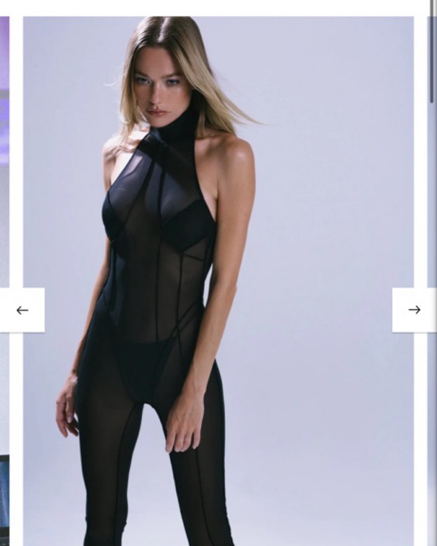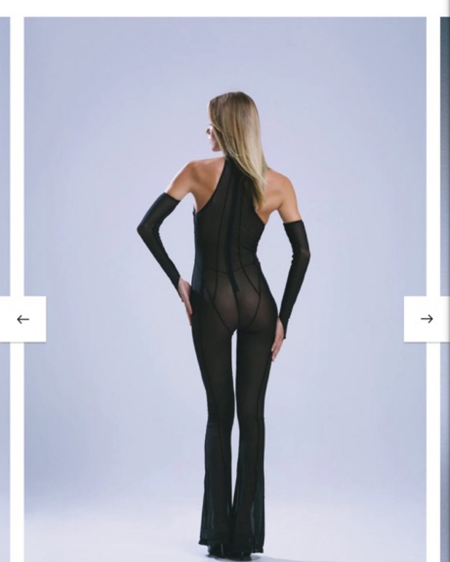 90% polyester, 10% spandex Hidden back zipper closure Mockneck styling Concealed bust sleeves NOT AVAILABLE Sheer mesh fabric