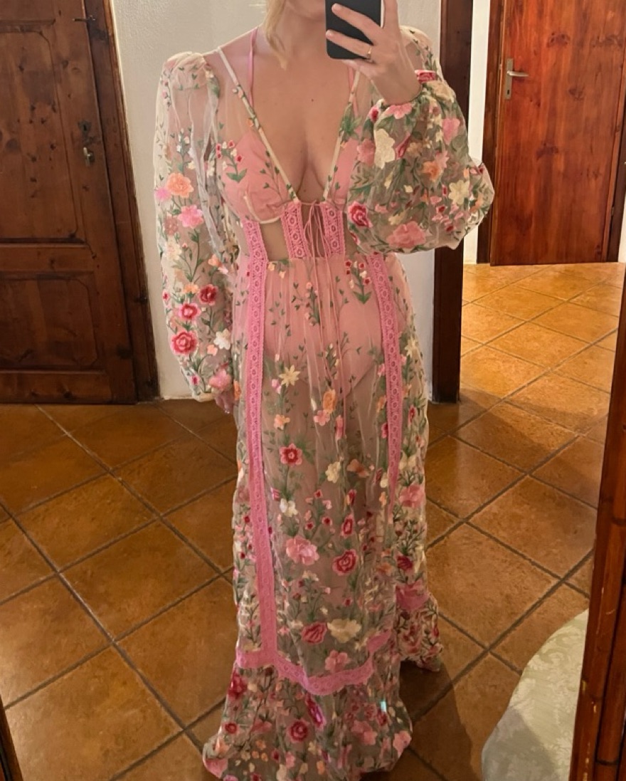 Worn once! Perfect dress, and I received so many compliments. Hasn’t been altered in anyway.