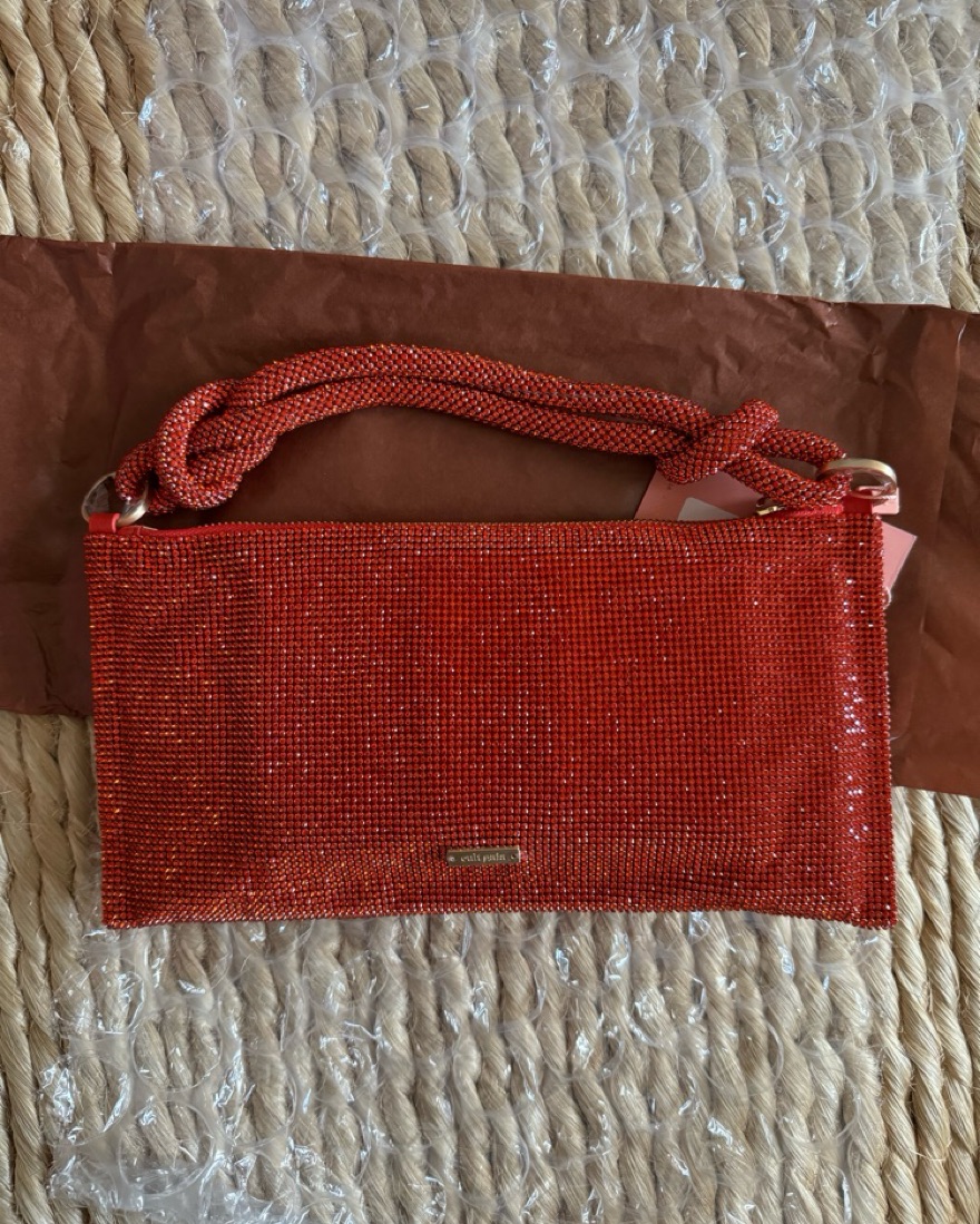 NEW! Please handle with care. Fits largest iphone :) 5.51" x 11.02" Tags: red bag, red clutch nano bag, rhinestone bag, evening bag, designer bag, Cult Gaia bag, shoulder bag, sparkly bag, new years eve, sparkles, sequins