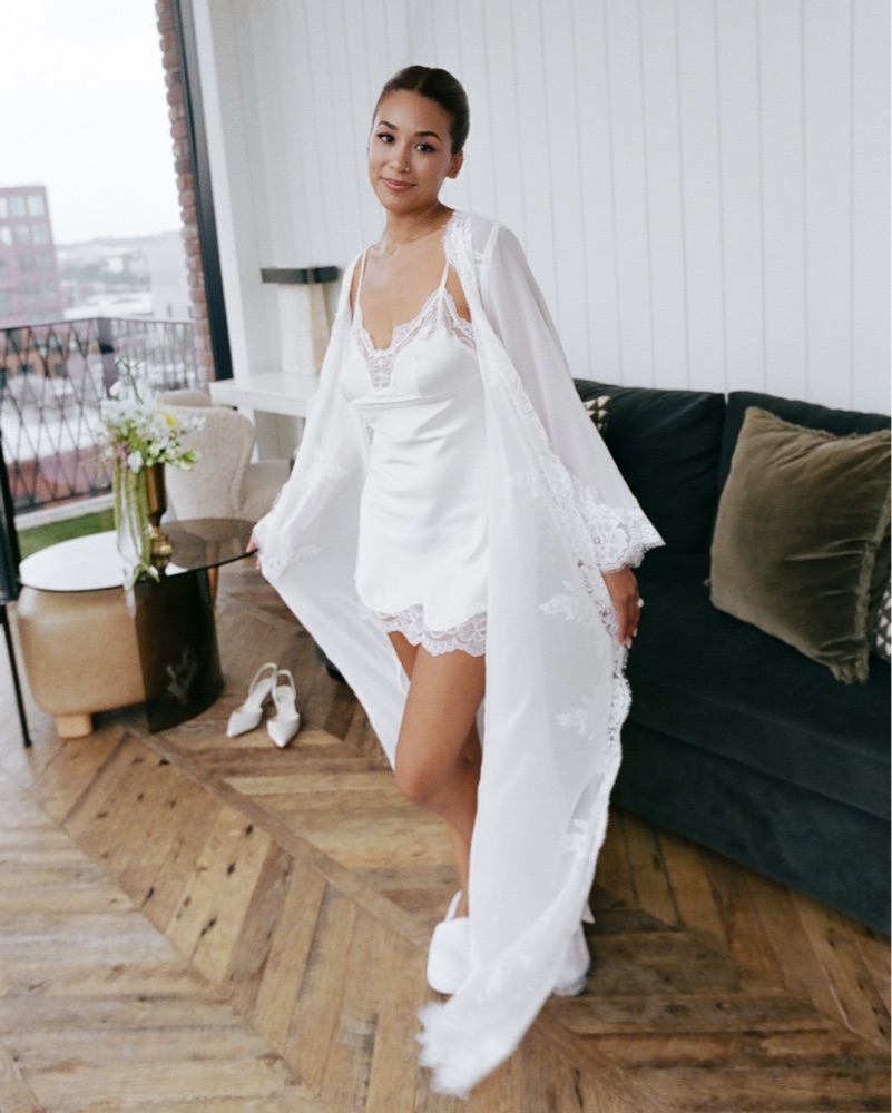 Wore for getting ready on my wedding day. Super cute and perfect for bridal events