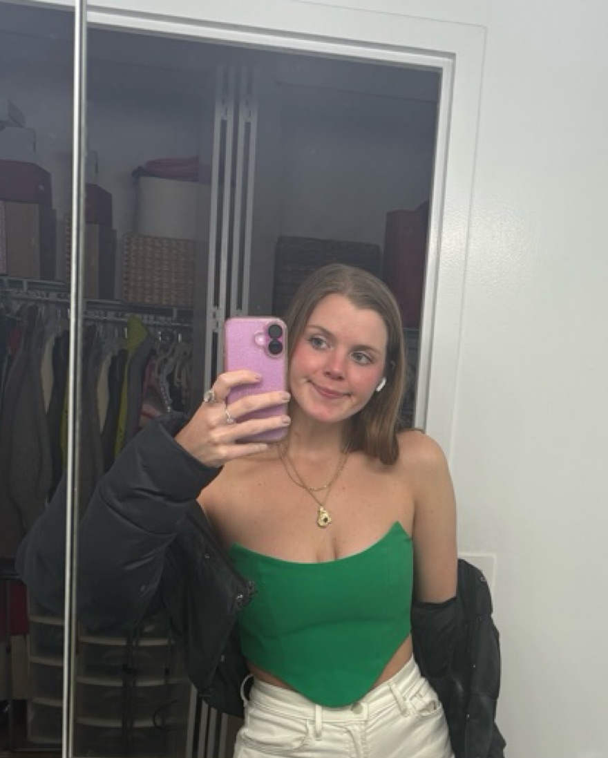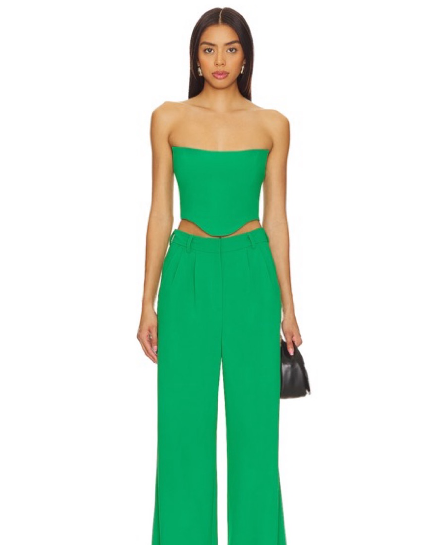 Beyond supportive and stunning strapless green top by Amanda Uprichard in a size XS! Features an exposed back zipper closure with smocked panels and a boned bust. High quality crepe fabric and made in the USA!