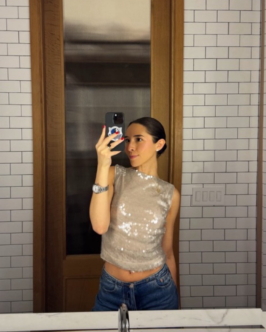 Sequin tan going out top