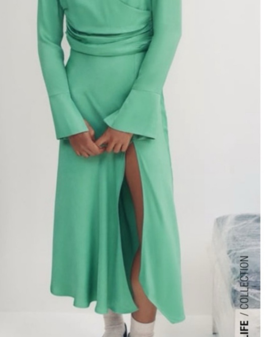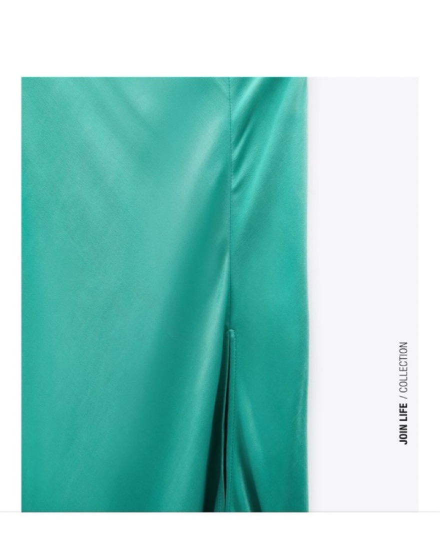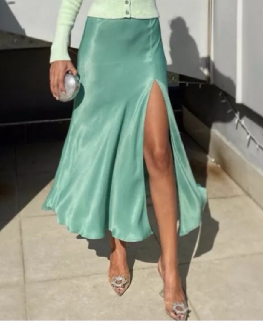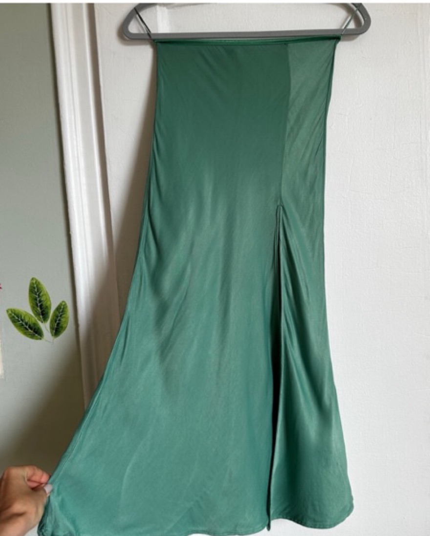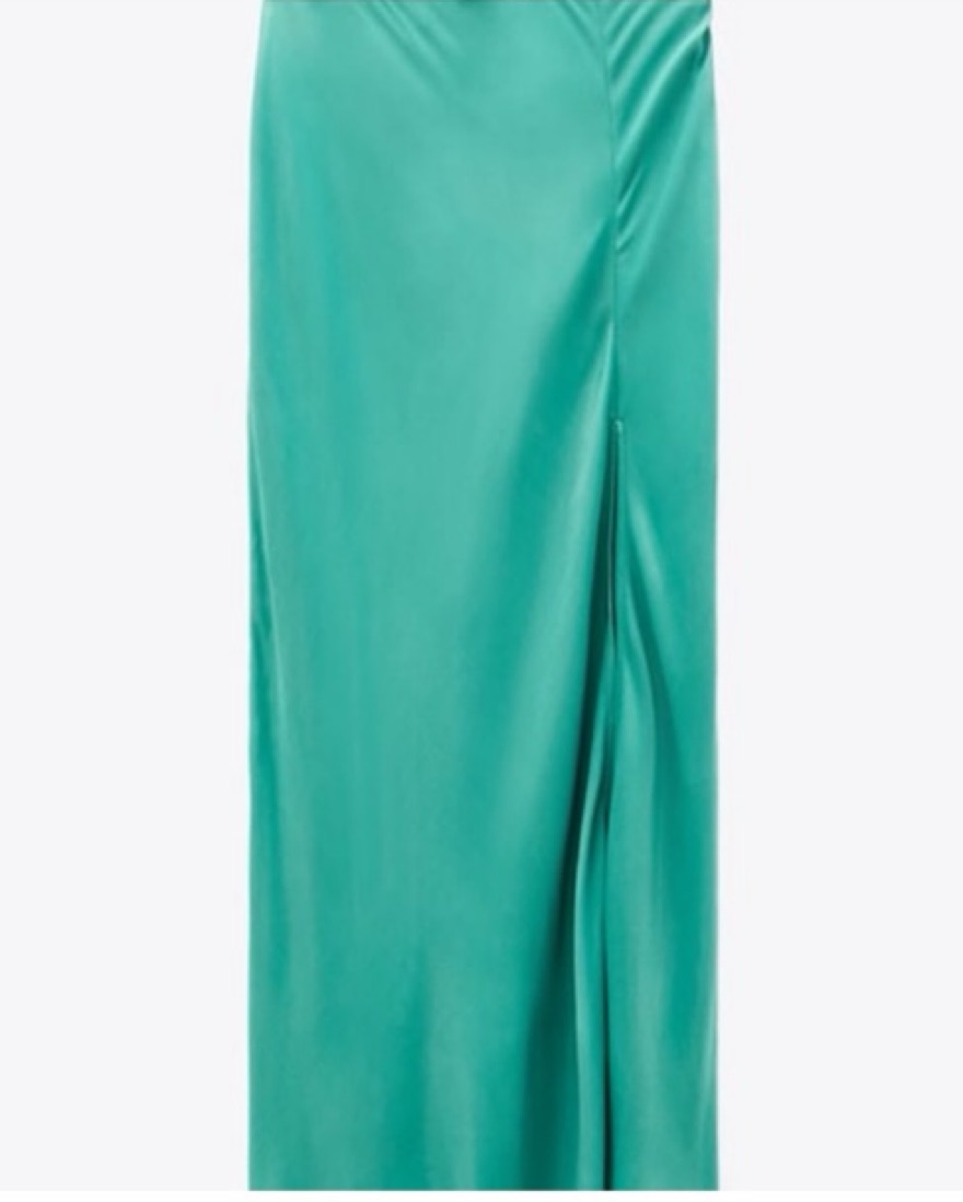 Zara Green Satin Maxi Skirt With Slit
