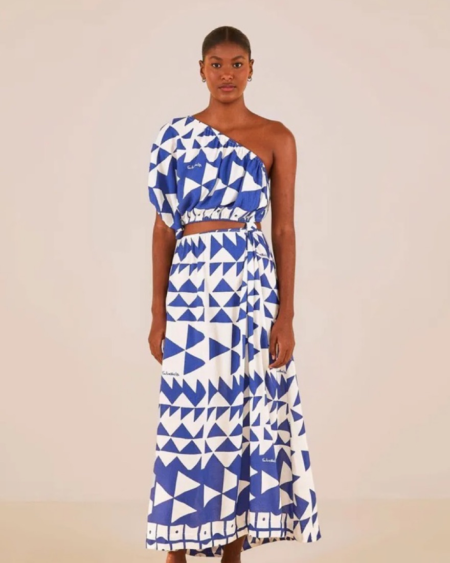 Farm Rio Pitta Tiles One-Shoulder Maxi